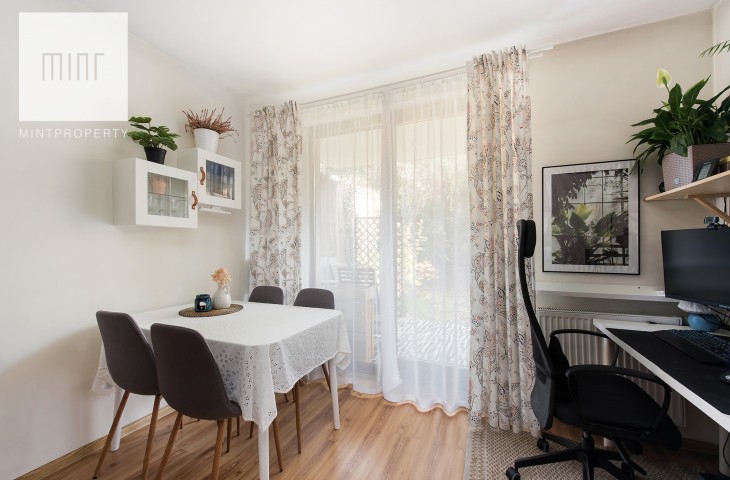 Mint Property presents for sale a comfortable two-bedroom apartment with a total area of 41.79 m², located on the ground floor of a charming, low-rise two-storey building from 2008, situated in a quiet and green part of Kraków – Dębniki, Zakrzowiecka Street.