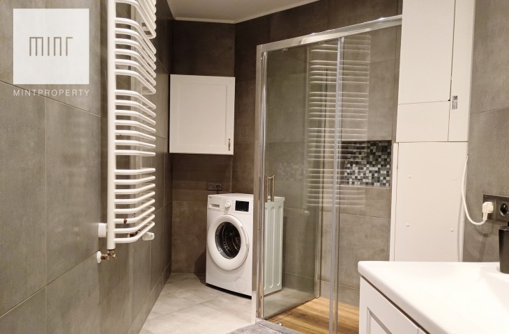 The apartment is equipped with gas heating (combi boiler) and air conditioning. The apartment is furnished and equipped with household appliances. The apartment has fiber optic internet.