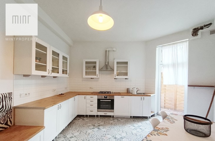 The apartment has an area of 90 m2 on the 4th floor (no elevator) and consists of: 3 spacious rooms, a hallway, a toilet, a large bathroom with a shower, a wardrobe, a kitchen, and a balcony.