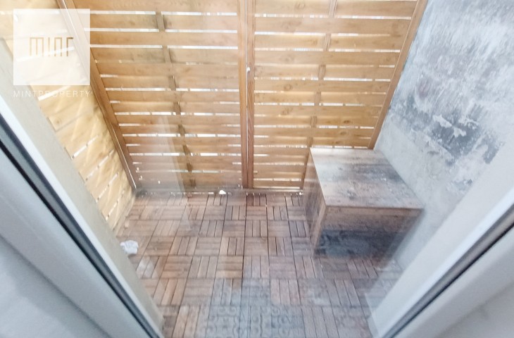 The apartment is located in a well-maintained tenement house with a balcony.