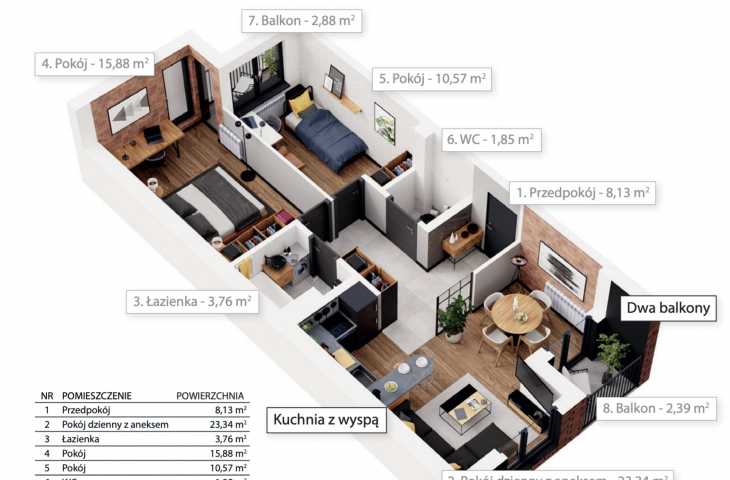 64 m2, 3 Pokoje