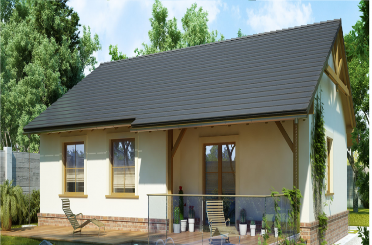 Budynek o pow. użytkowej ok.150 m2 wykonany wg projektu Słoneczko, który dedykowany jest dla 3-4 osobowej rodziny. Ze względu na prostotę, wygodę i funkcjonalność spełni on oczekiwania wszystkich domowników. Dzięki prostej konstrukcji i niewielkim gabarytom jest ekonomiczny w budowie. Dodatkowym walorem jest możliwość poszerzenia bryły budynku bez konieczności zmiany konstrukcji dachu. W projekcie powiększono salon oraz wykonano dadatkowe okna na podddaszu, dzięki czemu można wykorzystać dodatkową przestrzeń.