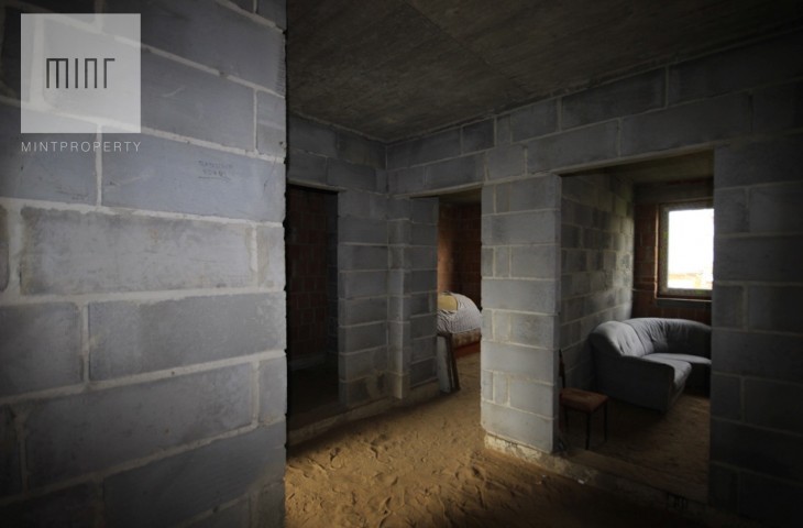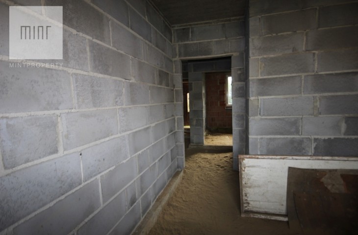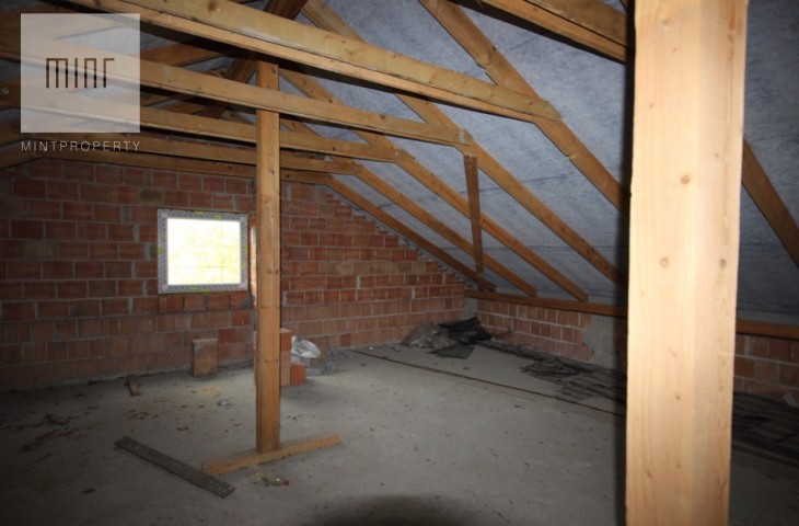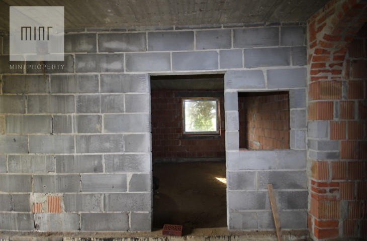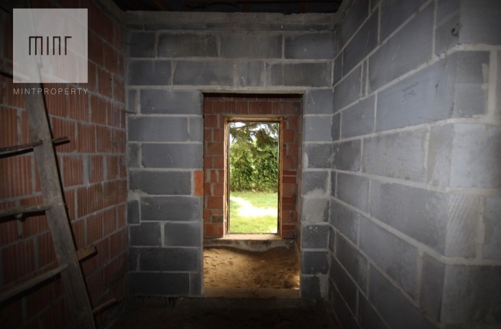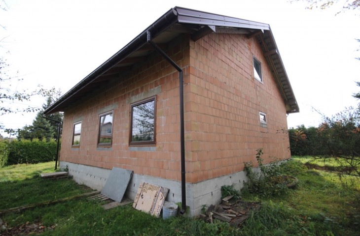 Budynek sprzedawany w stanie surowym zamkniętym, kryty blachodachówką, okna PCV, media: prąd, szambo, woda ze studni.
