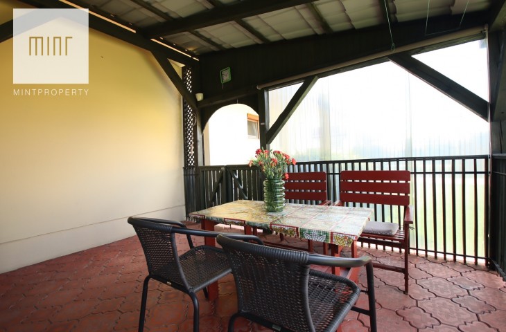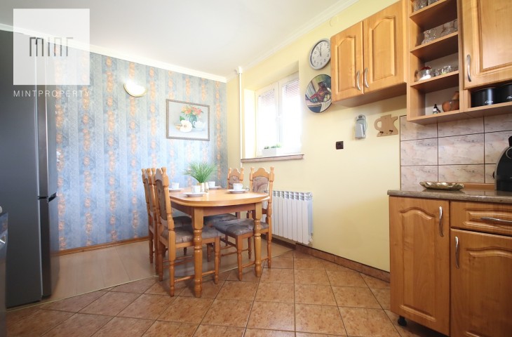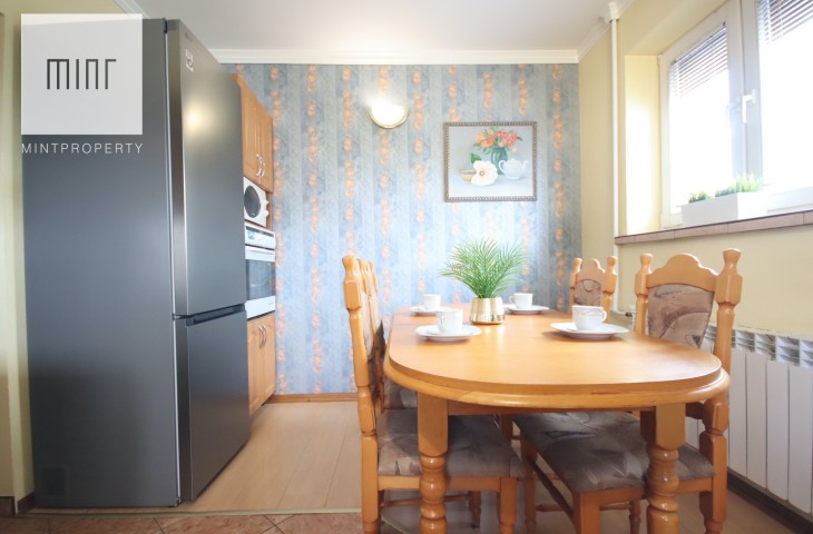 Nieruchomość jasna i przestronna, w bardzo dobrym stanie technicznym. W kuchni zmywarka, lodówka, piekarnik oraz mikrofalówka. W sypialniach na podłogach panele, w kuchni oraz łazience płytki. Okna drewniane z zamontowanymi roletami zewnętrznymi.