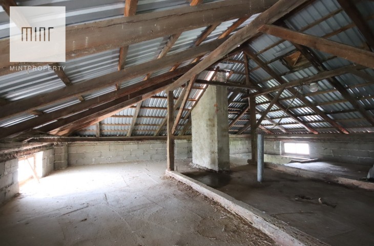Nieruchomość położona na 37 arowej działce, bezpośrednio przy drodze publicznej o nawierzchni asfaltowej, zabudowana budynkiem mieszklanym oraz 3 budynkami gospodraczymi. Zabudowania przeznaczone do generalnego remontu lub rozbiórki.