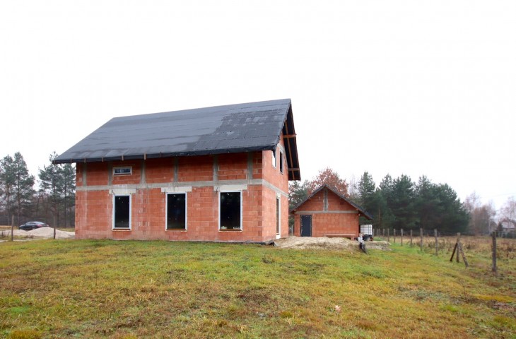 Budynek wykonany wg projektu "Dom w malinówkach 14" o powierzchni użytkowej 132,13 mkw położony na 15 arowej działce. Nieruchomość w trakcie budowy, w którym wykonano m.in.: