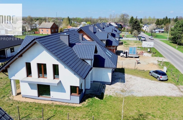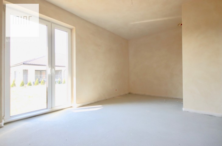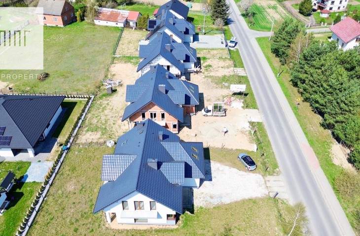 Stan deweloperski obejmuje: ława fundamentowa żel-bet, ściany fundamentowe monolityczne żel-bet, ściany z pustaka ceramicznego, stropy żel-bet, ocieplenie budynku styropianem 20cm, okna PCV w kolorze złoty dąb, drzwi zewnętrzne antywłamaniowe, zamontowane skrzynki pod rolety zewnętrzne, brama garażowa firmy Wiśniowski + napęd, ogrzewanie podłogowe na całości, tynki cementowe, wylewki, instalacje elektryczne, wodno-kanalizacyjne, dach wykonany na konstrukcji drewnianej w pełni ocieplony, kryty dachówką ceramiczną Rubin 9V w kolorze grafitowym.