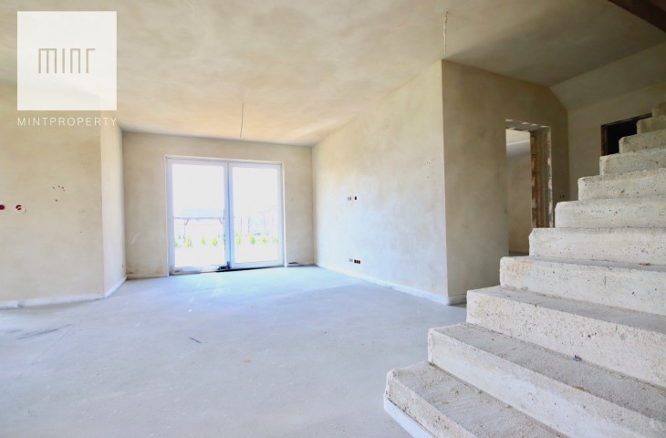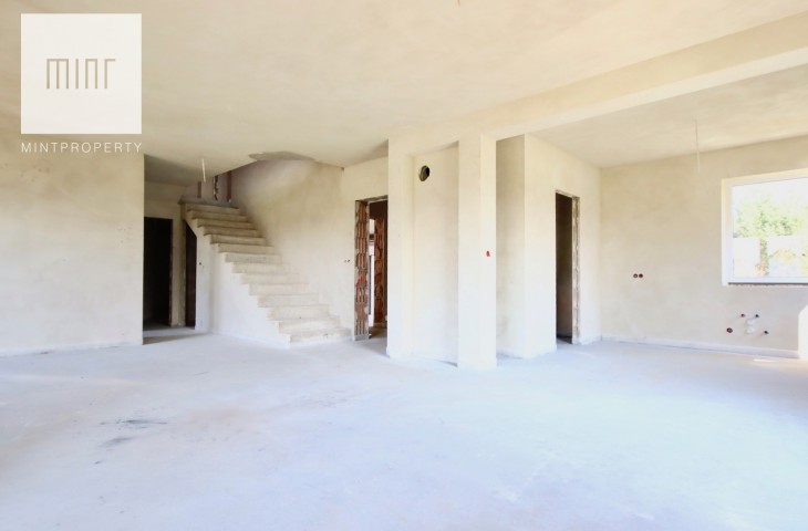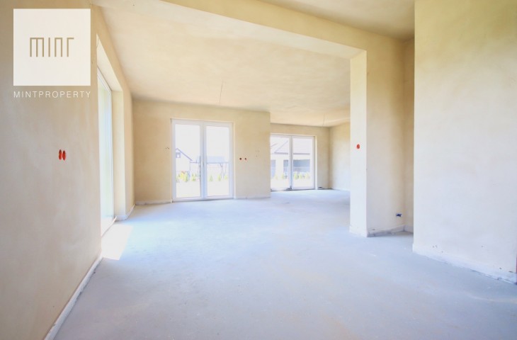 Biuro Nieruchomości Mint Property przedstawia na sprzedaż funkcjonalny dom w stanie deweloperskim o powierzchni 220 mkw, wybudowany z materiałów najwyższej jakości według indywidualnego projektu wzorowanego na Dom w Kortlandach 2g. Budynek parterowy z poddaszem użytkowym położony na działce o powierzchni 0,0783 ha.