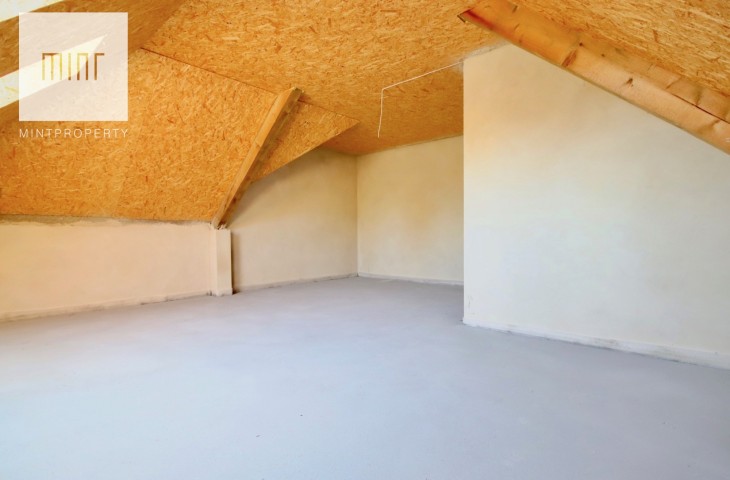 Poddasze: 3 sypialnie (każda posiada balkon), główna sypialnia z wydzieloną garderobą, łazienka, pralnia z balkonem typu loggia, pomieszczenie gospodarcze/schowek, pomieszczenie pod siłownię lub pokój gier.