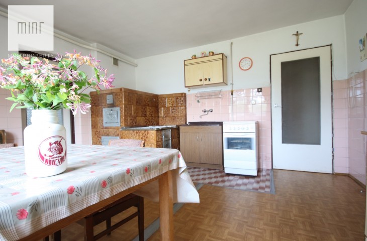 Budynek z lat 90tych, budowany z pustaka max,docieplony styropianem 10 cm, kryty blachą składa się dwóch pokoi, kuchni, łazienki oraz z kotłowni ulokowanych na parterze, oraz z trzech pokoi( w tym jeden przechodni), kuchni, łazienki na piętrze. Na podlogach parkiet drewniany, w łazience płytki. Okna drewniane. Nieruchomość zadbana i jasna, przeznaczona do odświeżenia lub remontu w zależności od preferencji kupującego. Ogrzewanie węglowe.