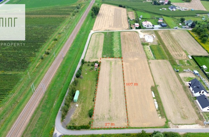 Nieruchomość o powierzchni 0,2900 ha o regularnym kształcie o wymiarach 27x107, teren równy, położona bezpośrednio przy drodze publicznej o nawierzchni asfaltowej.