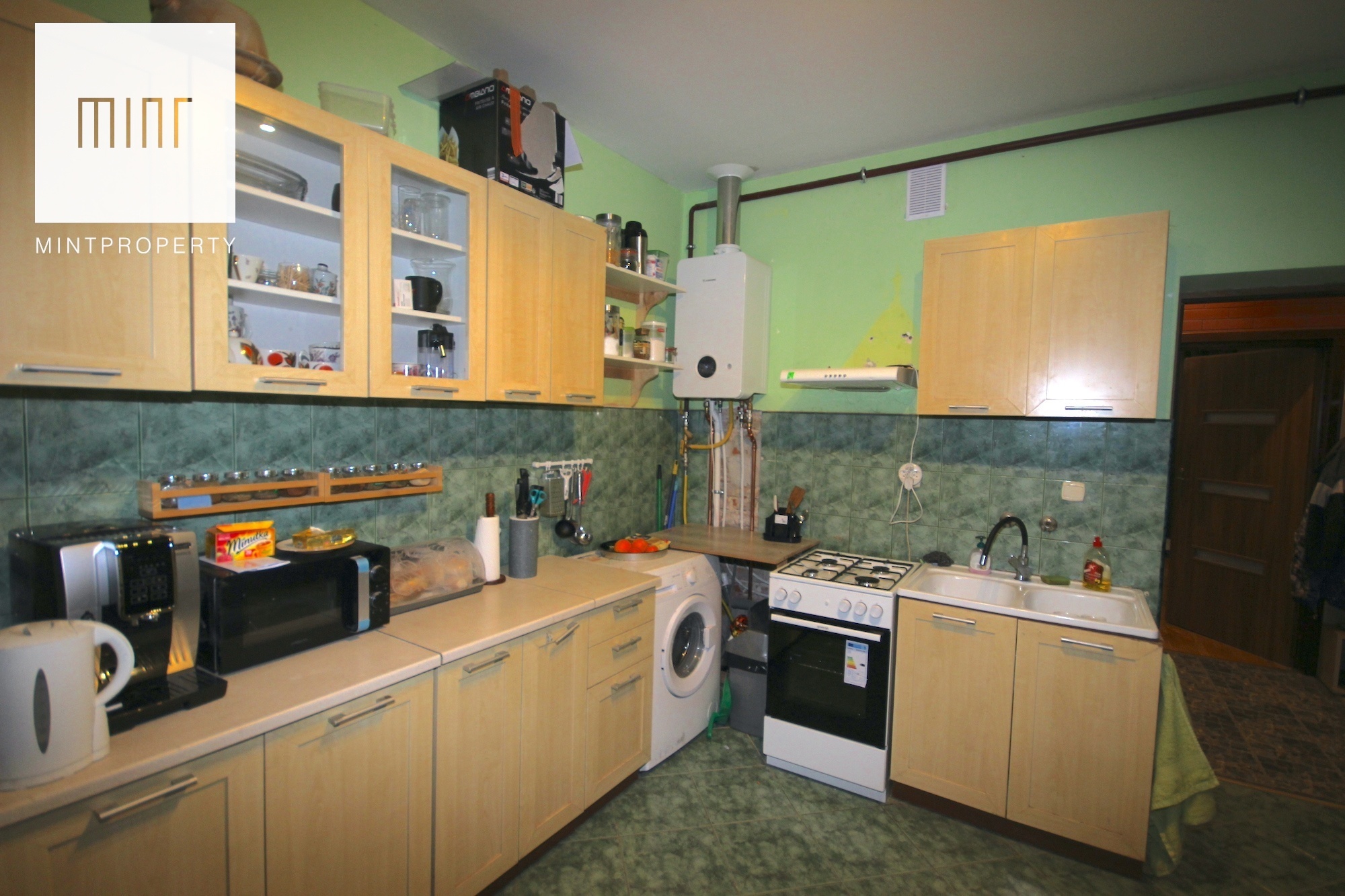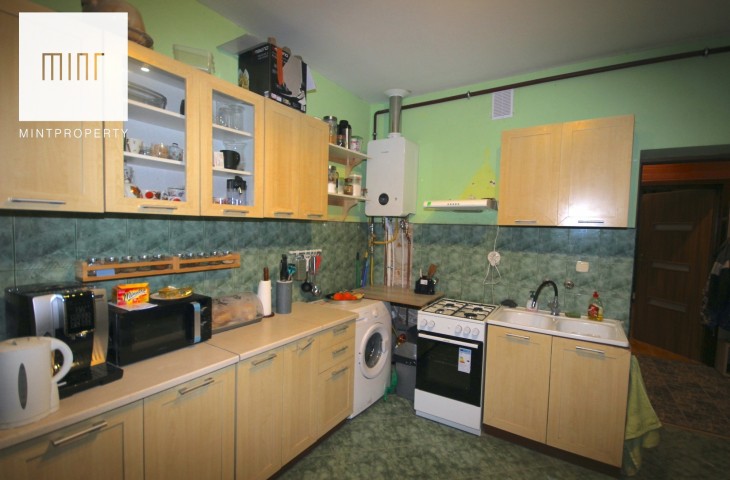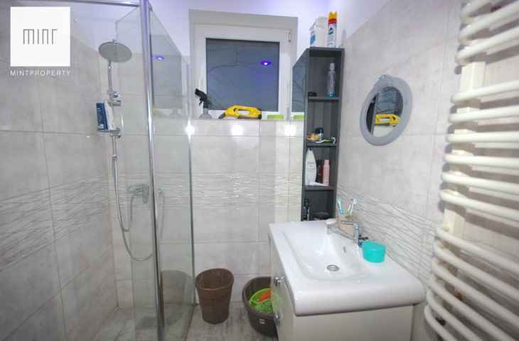 W pokojach na podłogach panele, w kuchni i łazience płytki. Okna PCV. Ogrzewanie własne gazowe piecem dwufunkcyjnym.