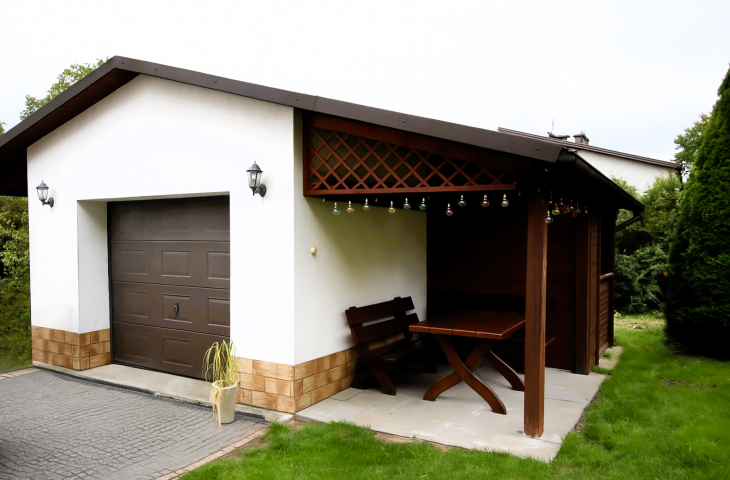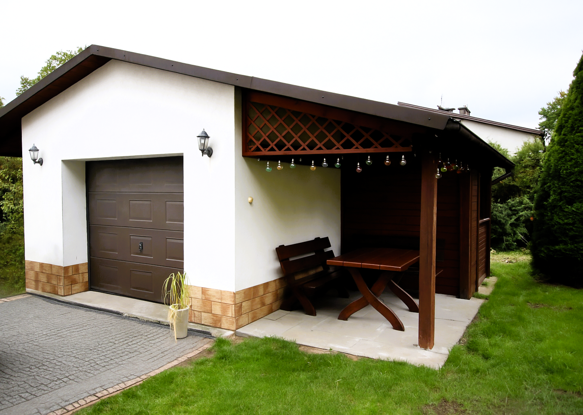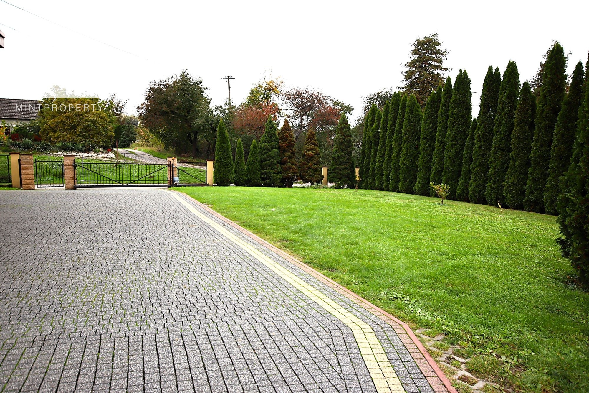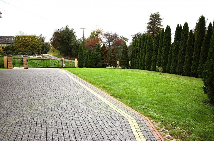 Ponadto na działce znajduje się murowany garaż z wydzielonym zadaszeniem oraz nasadzenia. Teren ogrodzony i częściowo utwardzony kostką brukową.