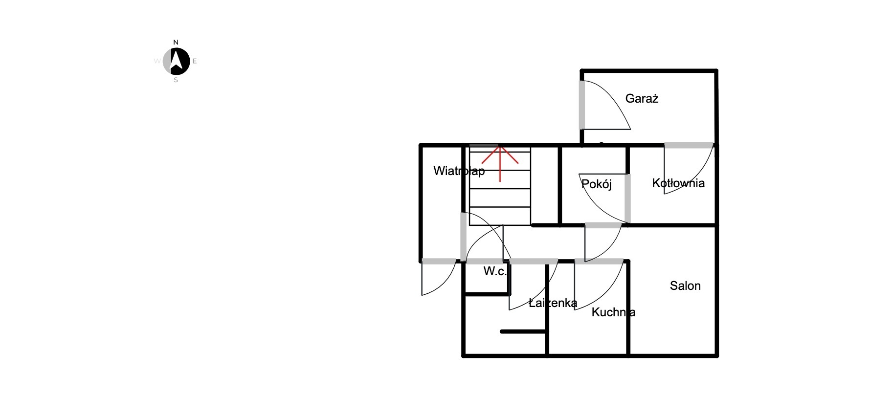 PARTER: wiatrołap, garderoba, salon, kuchnia, łazienka z wanną, w.c., pokój/gabinet, kotłownia, garaż