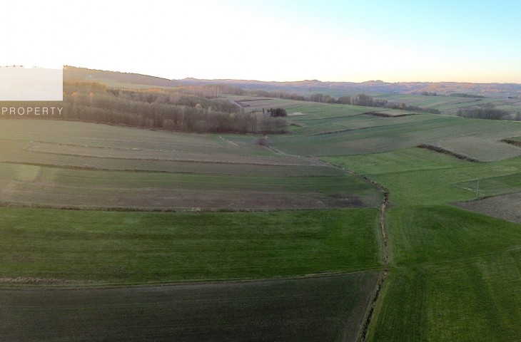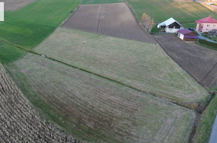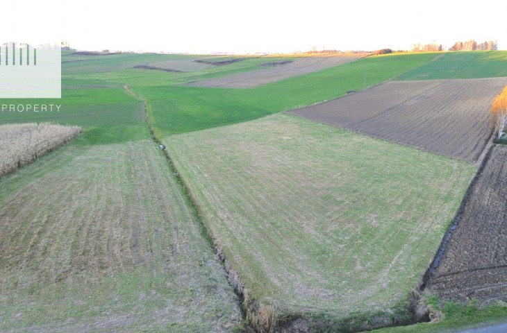 Nieruchomość składająca się z trzech działek i drogi o łącznej powierzchni 0,5524 ha, o nieregularnym kształcie, wymiary: 19x74m; 40x40m; 40x40. Działki przecina rów melioracyjny.