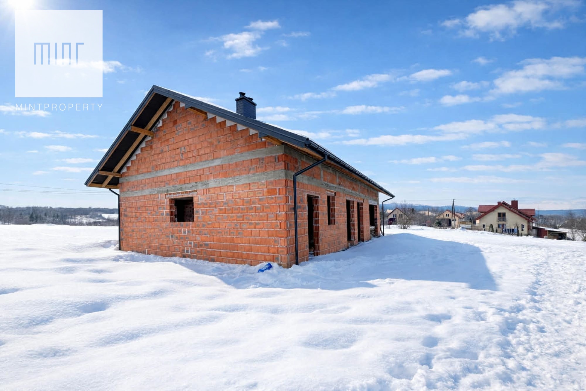 Biuro Nieruchomości Mint Property przedstawia na sprzedaż budynek mieszkalny w stanie surowym otwartym o powierzchni użytkowej 99,34 mkw położony na 7 arowej działce w Stobiernej.