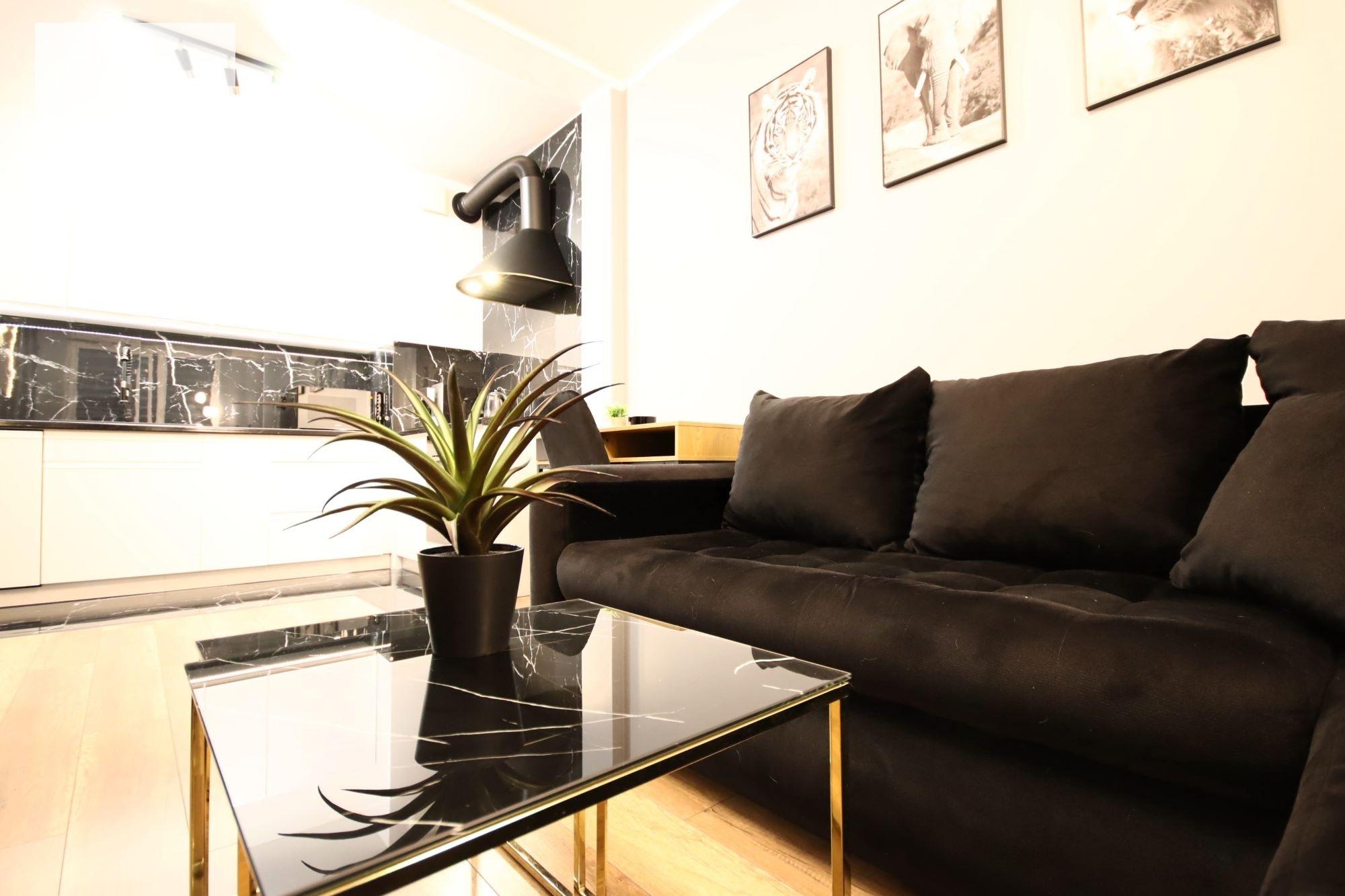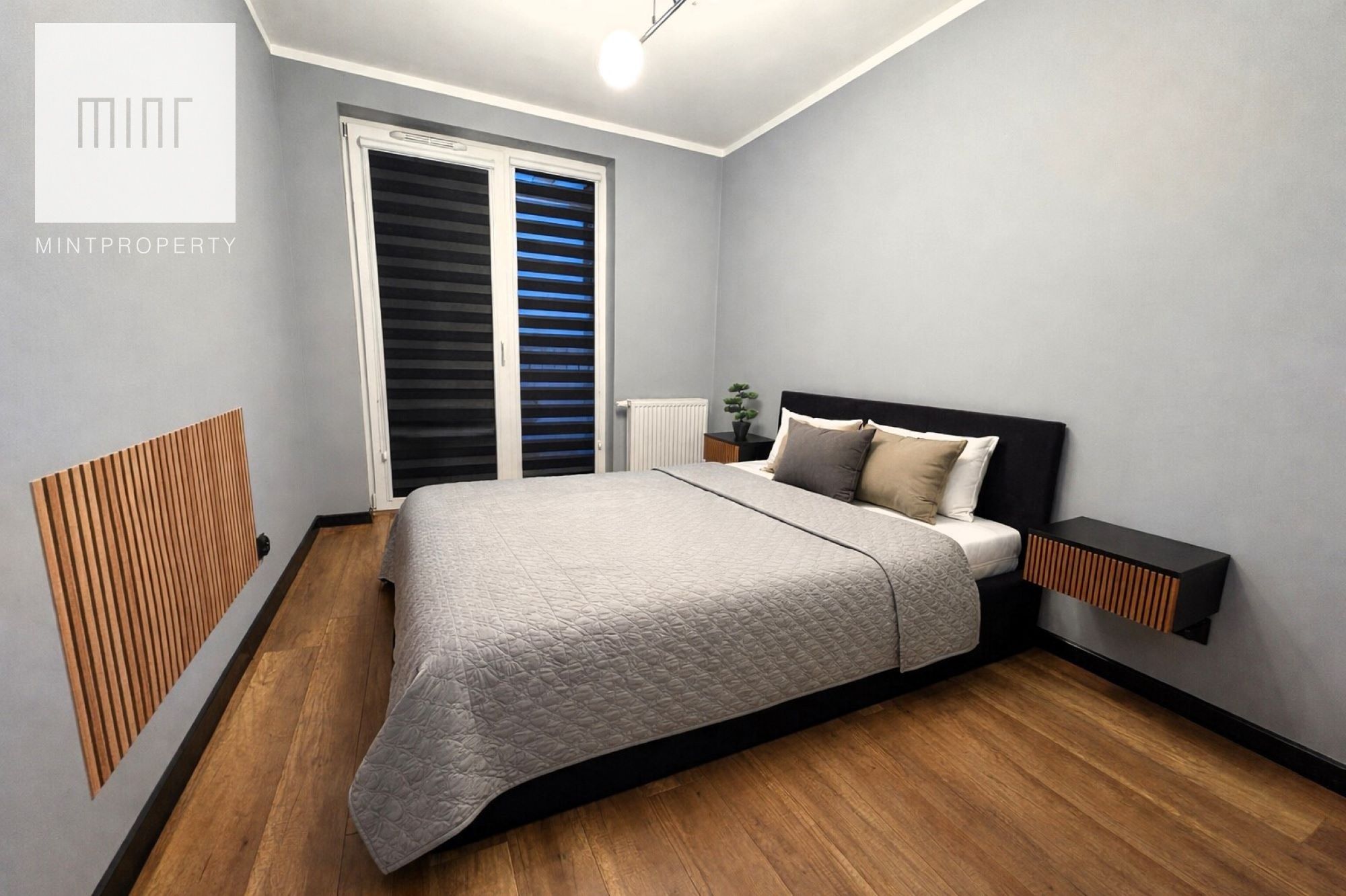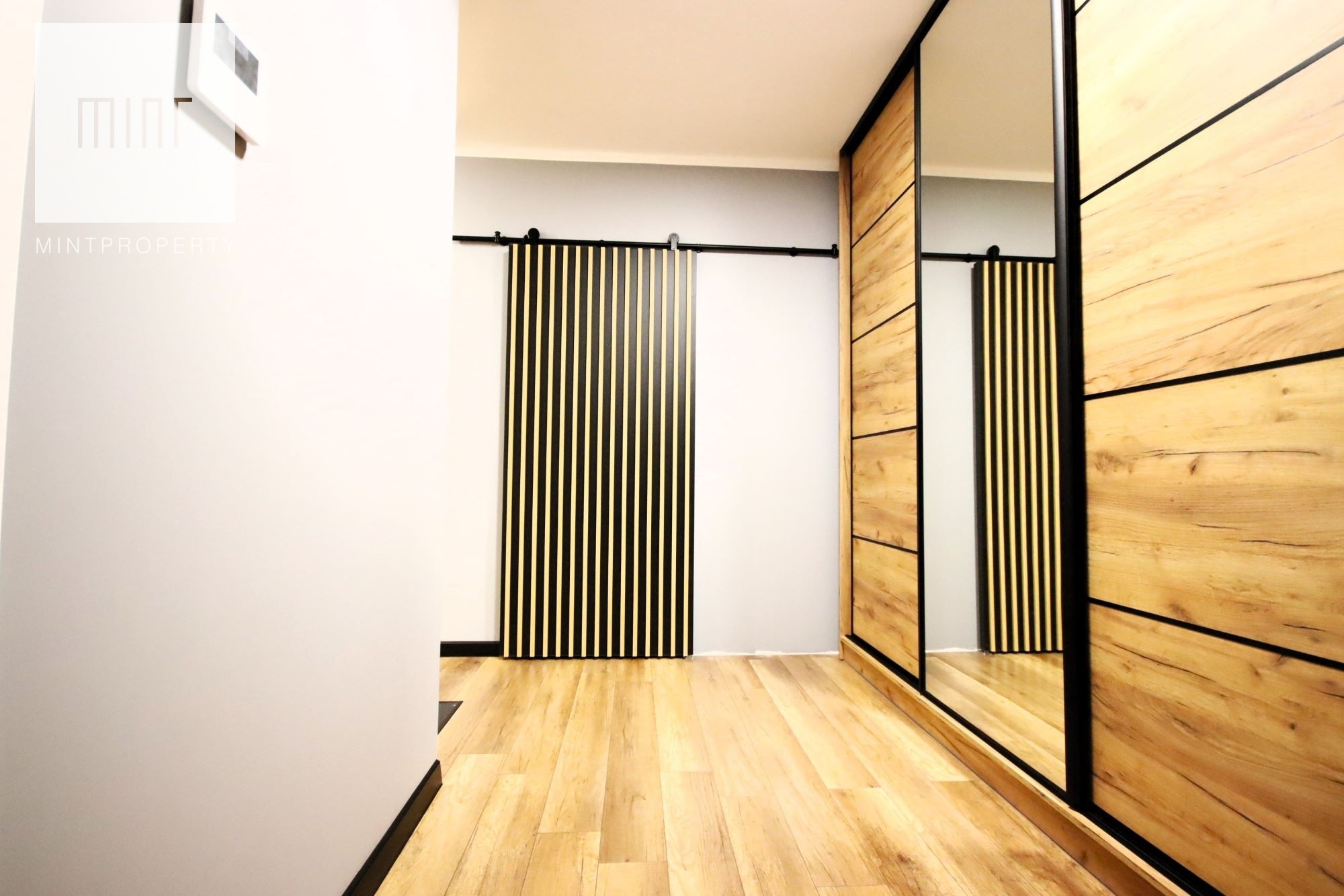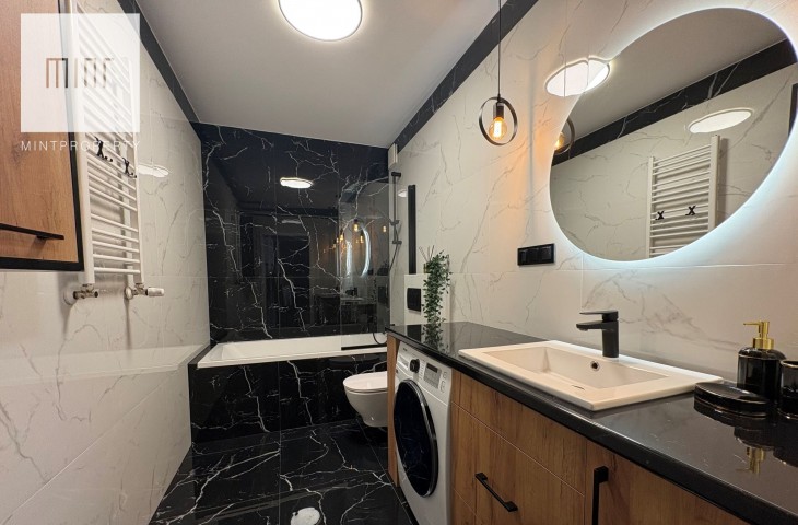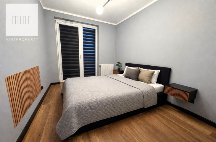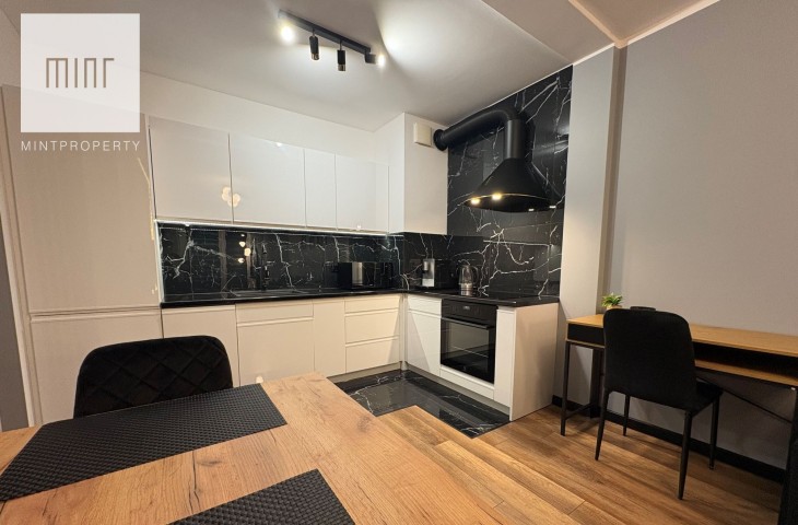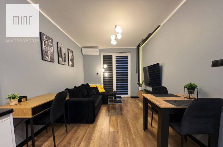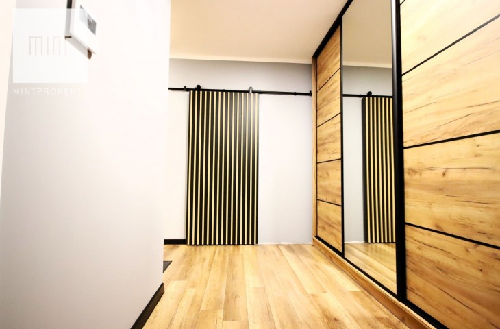 Nieruchomość wykończona wysokiej jakości materiałami w pełni wyposażona w sprzęt AGD: piekarnik, lodówkę, okap, płytę indukcyjną, pralko-suszarkę, zmywarkę, klimatyzację, TV, ekspres, mikrofalówkę, czajnik elektryczny, odkurzacz. Meble wykonane pod wymiar na specjalne zamówienie z pojemną szafą w przedpokoju.