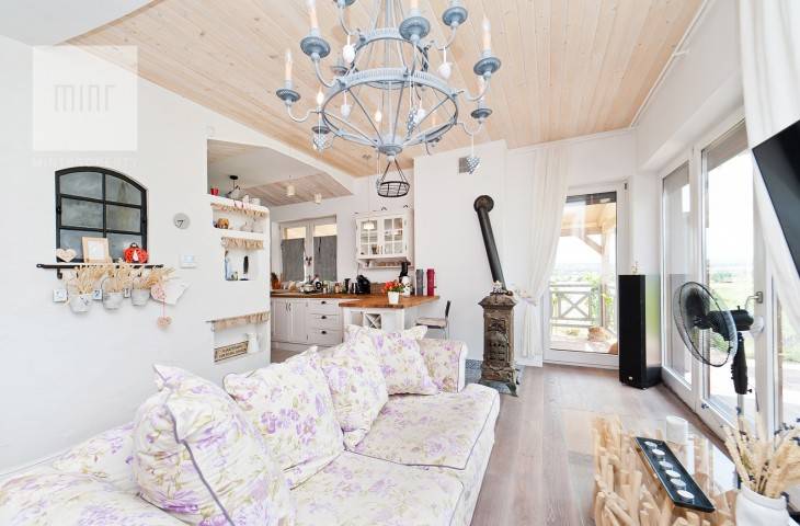 Dom jest całkowicie umeblowany i wyposażony w wyjątkowym klimacie. W salonie dodatkowo znajduje się kominek