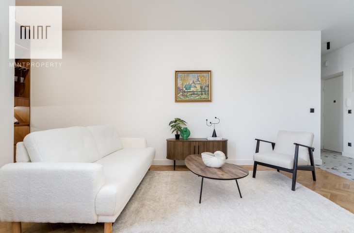 Mieszkanie po generalnym remoncie. Wymienione zostały okna, instalacja elektryczna i hydrauliczna, parapety, drzwi wewnętrzne i zewnętrzne, na ścianach i sufitach położono gładzie, a na podłodze położono drewniany parkiet.