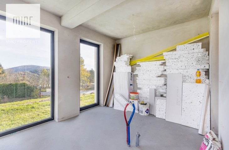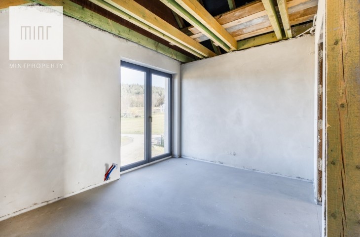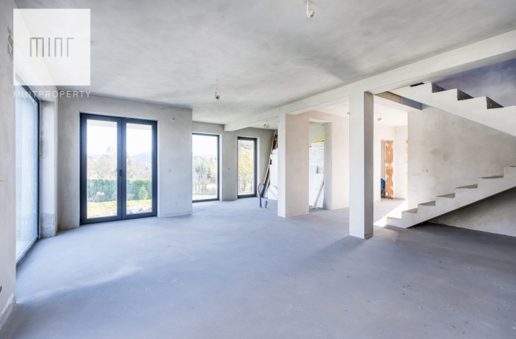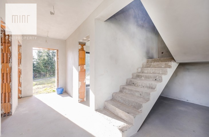 Mint Property ma przyjemność zaprezentować wolnostojący dom na sprzedaż w stanie deweloperskim. Dom o powierzchni całkowitej 147 m2 znajduje się na 8 arowej działce i składa się z: