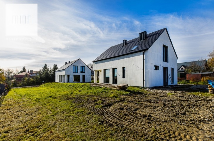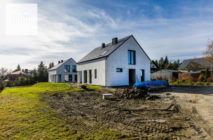 Dom jest w stanie deweloperskim, wybudowanym w 2023 roku. Nieruchomość posiada dużo przeszkleń. Położona jest na słonecznej działce. Sąsiaduje z drugim bliźniaczym domem.