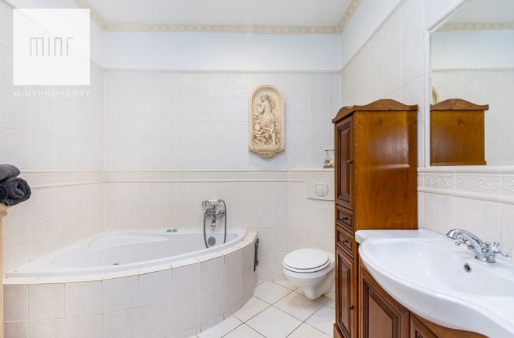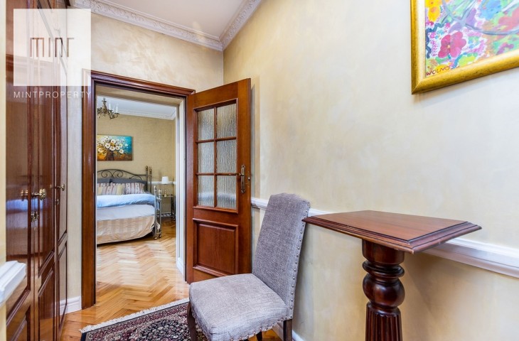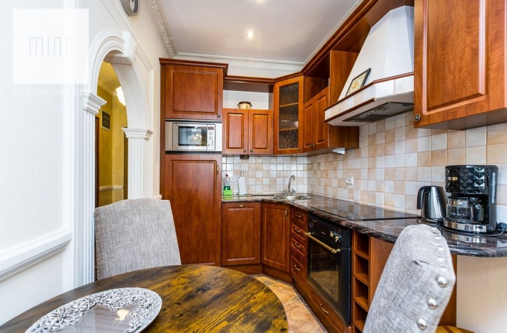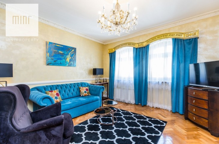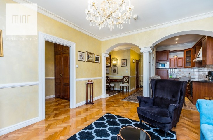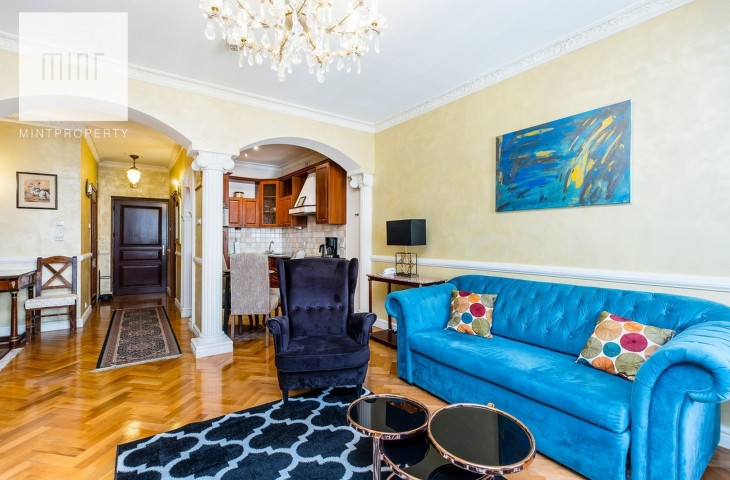 Wystrój wnętrza jest bardzo spójny z charakterem kamienicy. Właściciele zadbali o antyczne meble i szlachetne dodatki. Mieszkanie jest umeblowane i w pełni wyposażone. W kuchni zmywarka, płyta grzewcza z piekarnikiem, mikrofala, lodówka z zamrażarką. W łazience kabina prysznicowa i wygodna wanna. Nieruchomość posiada klimatyzację.