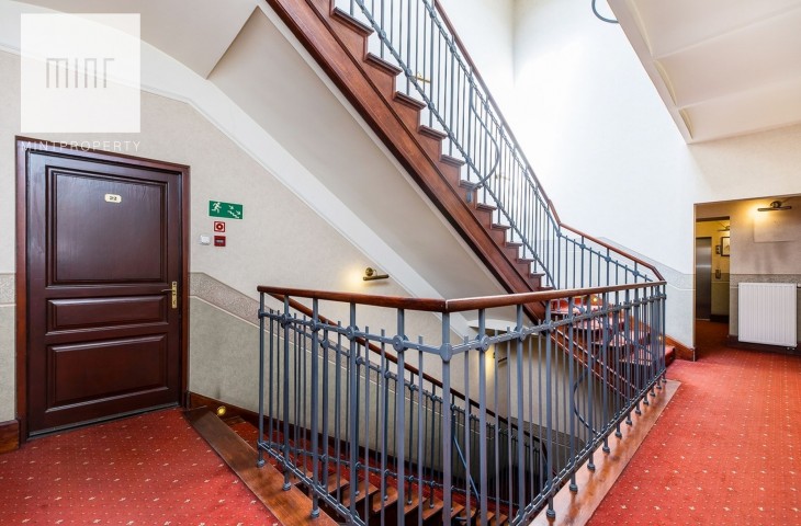 Lokal o powierzchni 65,40 m2 położony jest na trzecim piętrze odnowionej zabytkowej kamienicy z windą i składa się z: