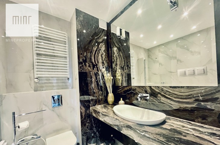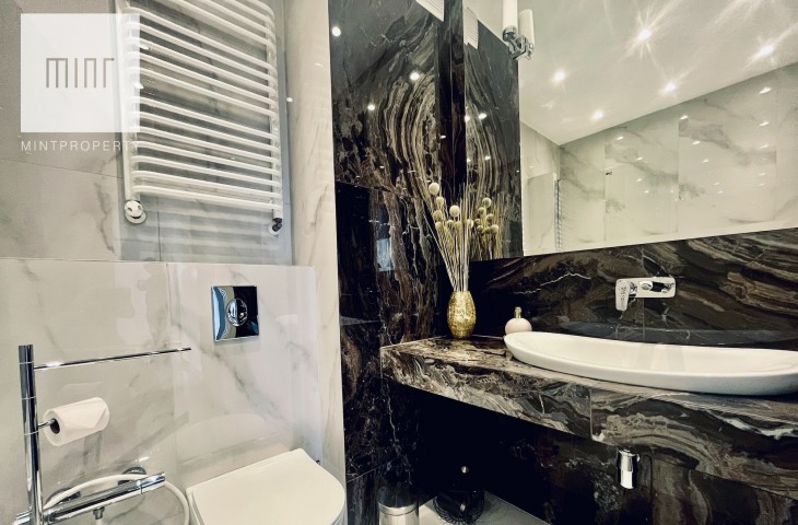 Do mieszkania przynależy miejsce postojowe w garażu podziemnym. Mieszkanie jest wykończone w wysokim standardzie i w pełni umeblowane. W mieszkaniu jest zainstalowana klimatyzacja.