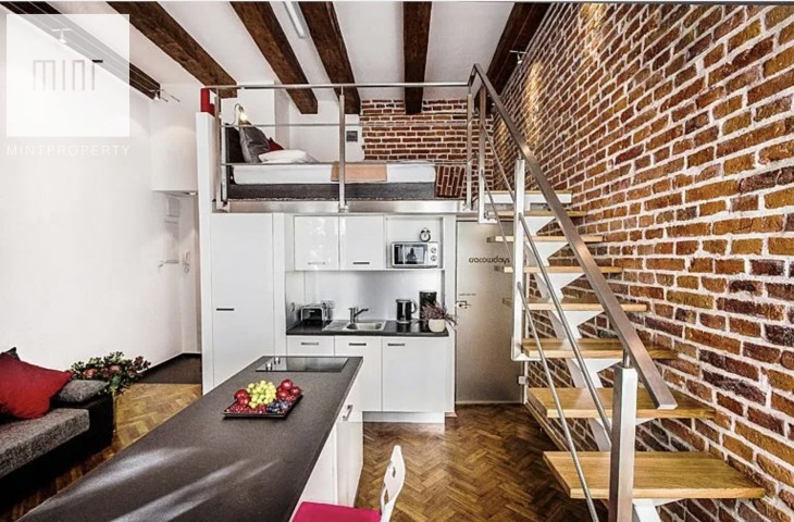 Mint Property ma przyjemność zaprezentować przestronne i pełne uroku studio typu open space, usytuowane w malowniczej, cichej uliczce Starego Miasta. Mieszkanie znajduje się w zabytkowej kamienicy z 1895 roku, zaledwie 7 minut spacerem od Rynku Głównego. To doskonała lokalizacja, która łączy historyczny charakter z nowoczesnymi udogodnieniami.