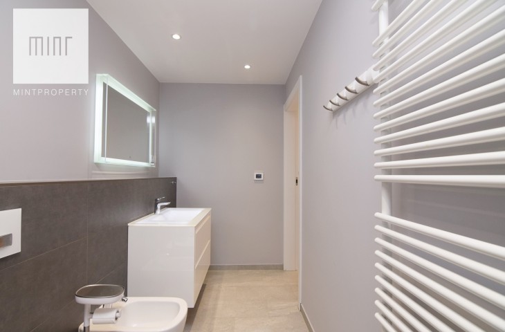 Klimatyzacja. Do lokalu przynależy komórka o powierzchni ok. 3 m2 oraz miejsce w garażu podziemnym za w sumie 80 tys zł (bezpośredni dzjazd windą). Ekspozycja na zachód.