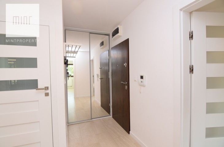 Nowy apartementowiec z 2018 roku, rok temu odświeżone mieszkanie. Na podłogach panele i terakota. Do wejścia. Wysokość pomieszczeń 270 cm. Ogrzewanie i ciepła woda miejska. Dodatkowo ogrzewanie podłogowe, strefowe w łazience, kuchni i przedpokoju.