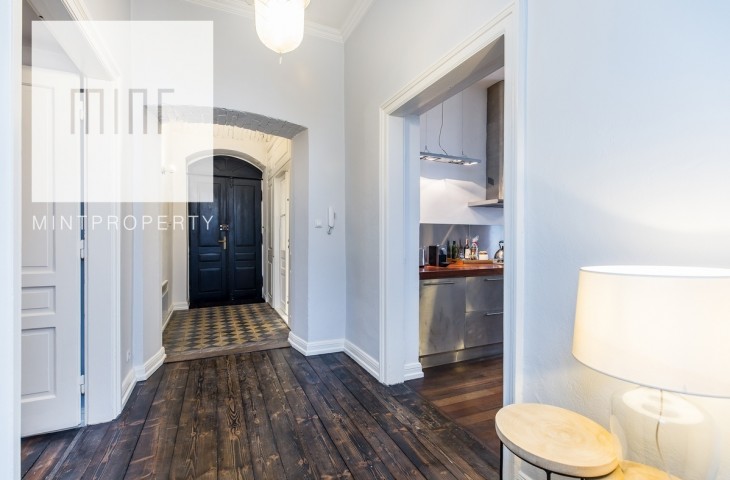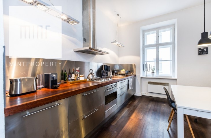 Całkowita powierzchnia wynosi 93 m2. Wysokość mieszkania: 3,5 m. Do mieszkania przynależy także piwnica o powierzchni 15 m2. W latach 2006 i 2014 w mieszkaniu przeprowadzono generalny remont, podczas którego wymieniono całą instalację elektryczną. Mieszkanie jest w pełni wyposażone. Wyposażenie kuchni jest najwyższej jakości:płyta elektryczna, lodówka, zmywarka, ekspres do kawy, toster itp. Ogrzewanie elektryczne.