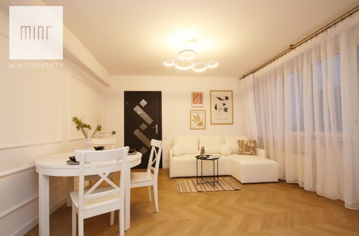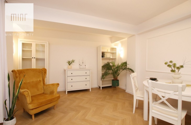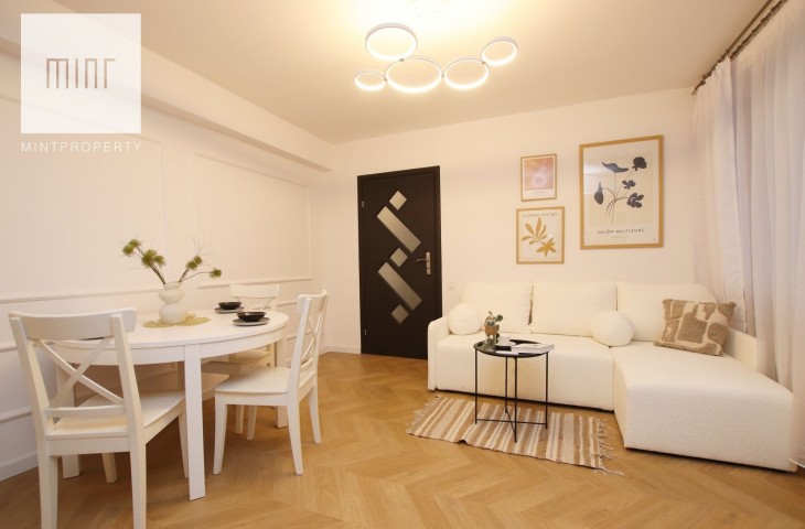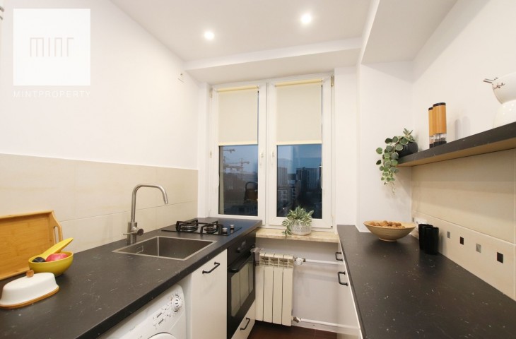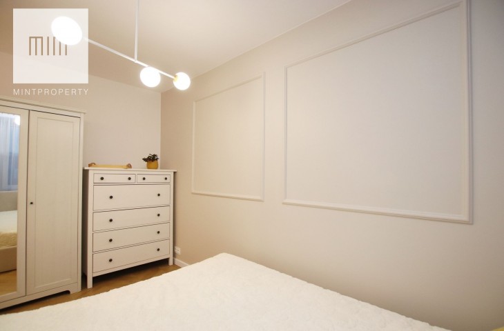 Mieszkanie świeżo po częściowym remoncie - do wprowadzenia. Kuchnia wyposażona w lodówkę, płytę grzewczą, piekarnik oraz pralkę. W sypialni poza dużym łóżkiem 160 cm znajdziemy także szafę. Salon wyposażony w stół z krzesłami, rozkładaną kanapkę oraz regały czy komodę.