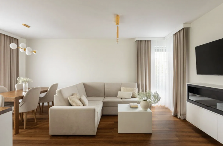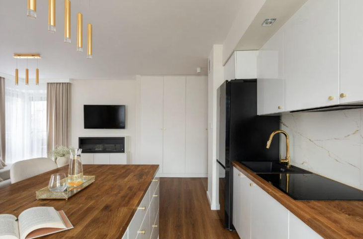 Do mieszkania przynalezy balkon wychodzący z salonu. Nieruchomość została całkowicie wyremontowana w 2023 roku i wyposazona w klimatyzację, system filtracji wody i nowe sprzęty.