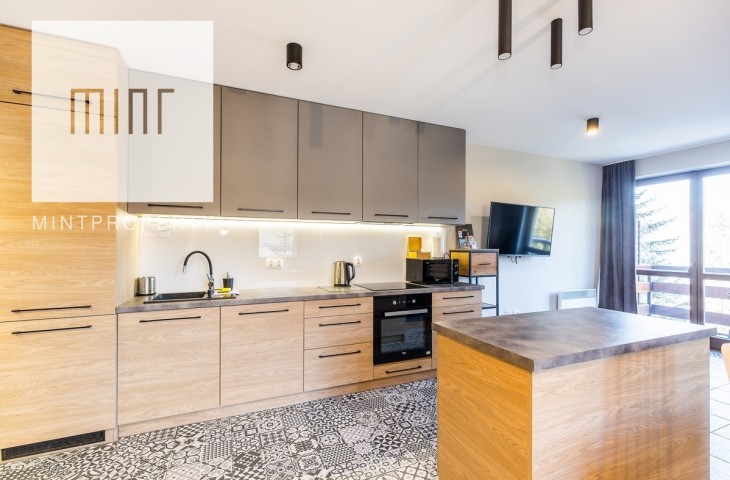 Mint Property ma przyjemność przedstawić Państwu eleganckie mieszkanie, zlokalizowane w budynku apartamentowym z 2011 r. przy ul. Sywarne w Kościelisku.