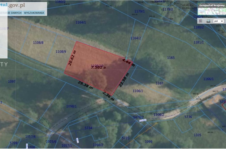 Działka jest w kształcie zbliżonym do prostokąta. Lekko pochylona