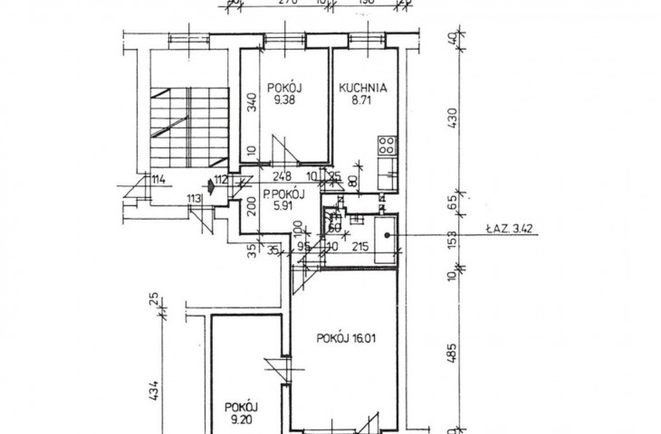 Podłogi w kuchni oraz w łazience stanowią flizy. W jednym z pokojów wbudowana jest duża szafa wnękowa z wieloma półkami, z przesuwnymi drzwiami. W kuchni zabudowa kuchenna, z kuchenką gazową oraz miejscem na lodówkę. W przedpokoju również szafa w zabudowie, z boazerii drewnianej. Łazienka wykończona flizami, z dużą wanną. Okna drewniane, starego typu. Grzejniki panelowe.