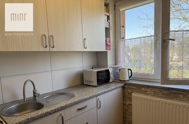 Mieszkanie mieści się przy ul. Glinik w spokojnej, zielonej części dzielnicy Wzgórza Krzesławickie. To cicha okolica – zabudowa głównie niska: domy jednorodzinne i bloki 1-2 piętrowe oddzielone od siebie otwartą przestrzenią. 2 minuty spacerkiem do najbliższego przystanku MPK.