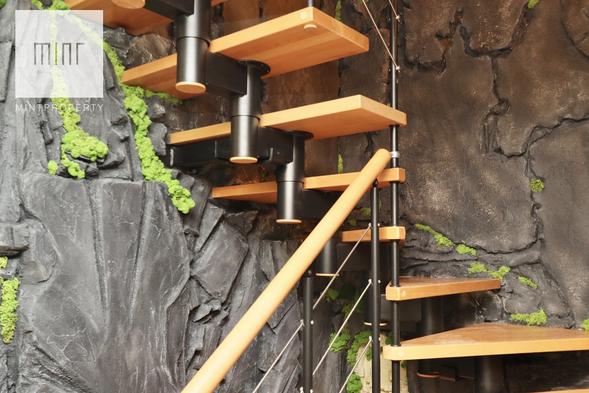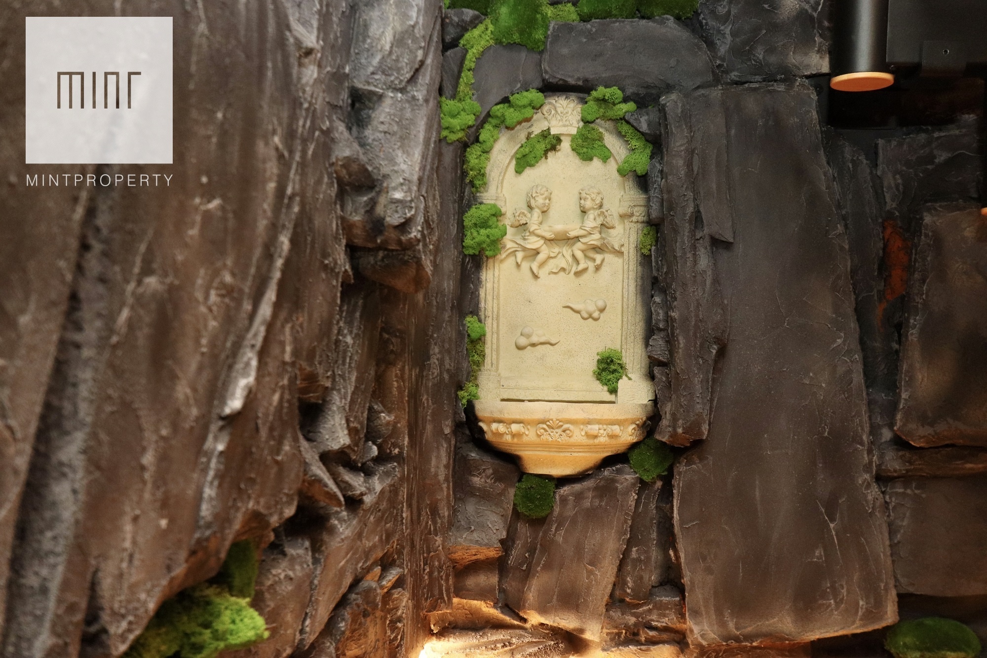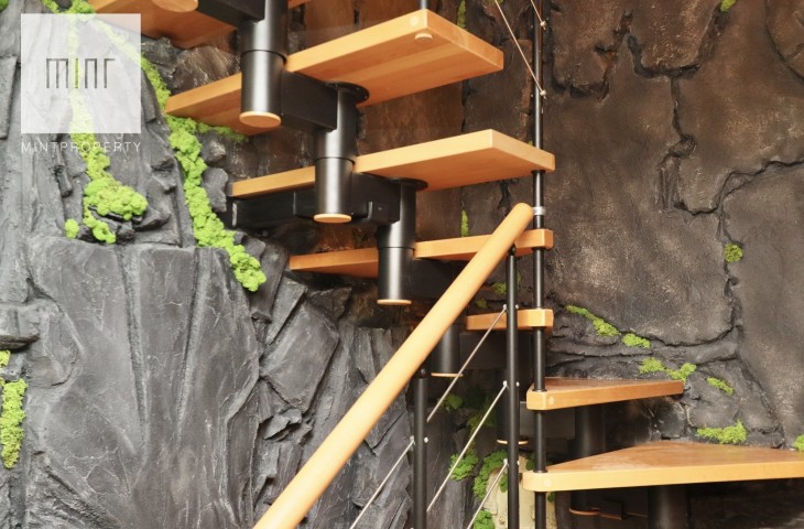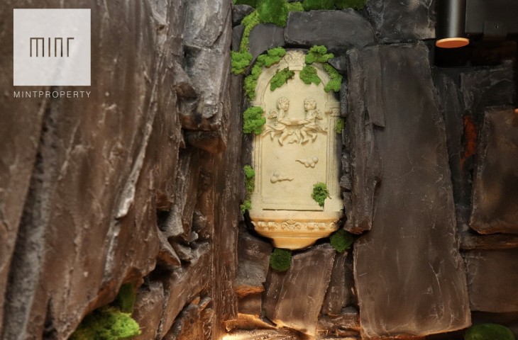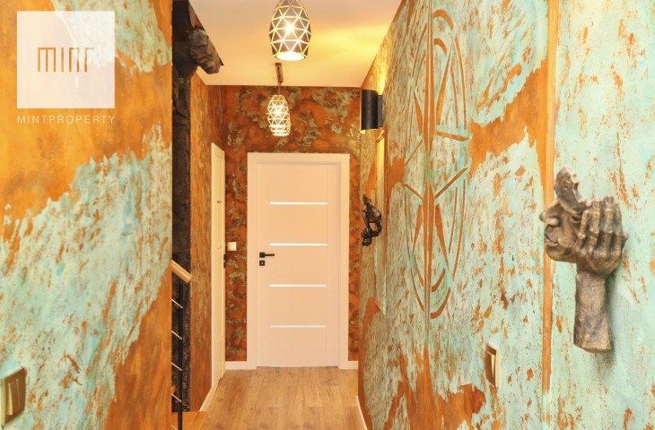 Wnętrze zostało zaprojektowane z ogromną dbałością o detale, w unikatowym stylu z elementami inspirowanymi światem „Władcy Pierścieni”. Wejście na piętro prowadzi przez aranżację imitującą skały, z efektownym oświetleniem LED (aż 60 m taśmy ukrytej w strukturze), ścienną fontanną i naturalnym mchem. Wysokość klatki schodowej (ok. 7 m) robi spektakularne wrażenie i nadaje przestrzeni wyjątkowego charakteru.