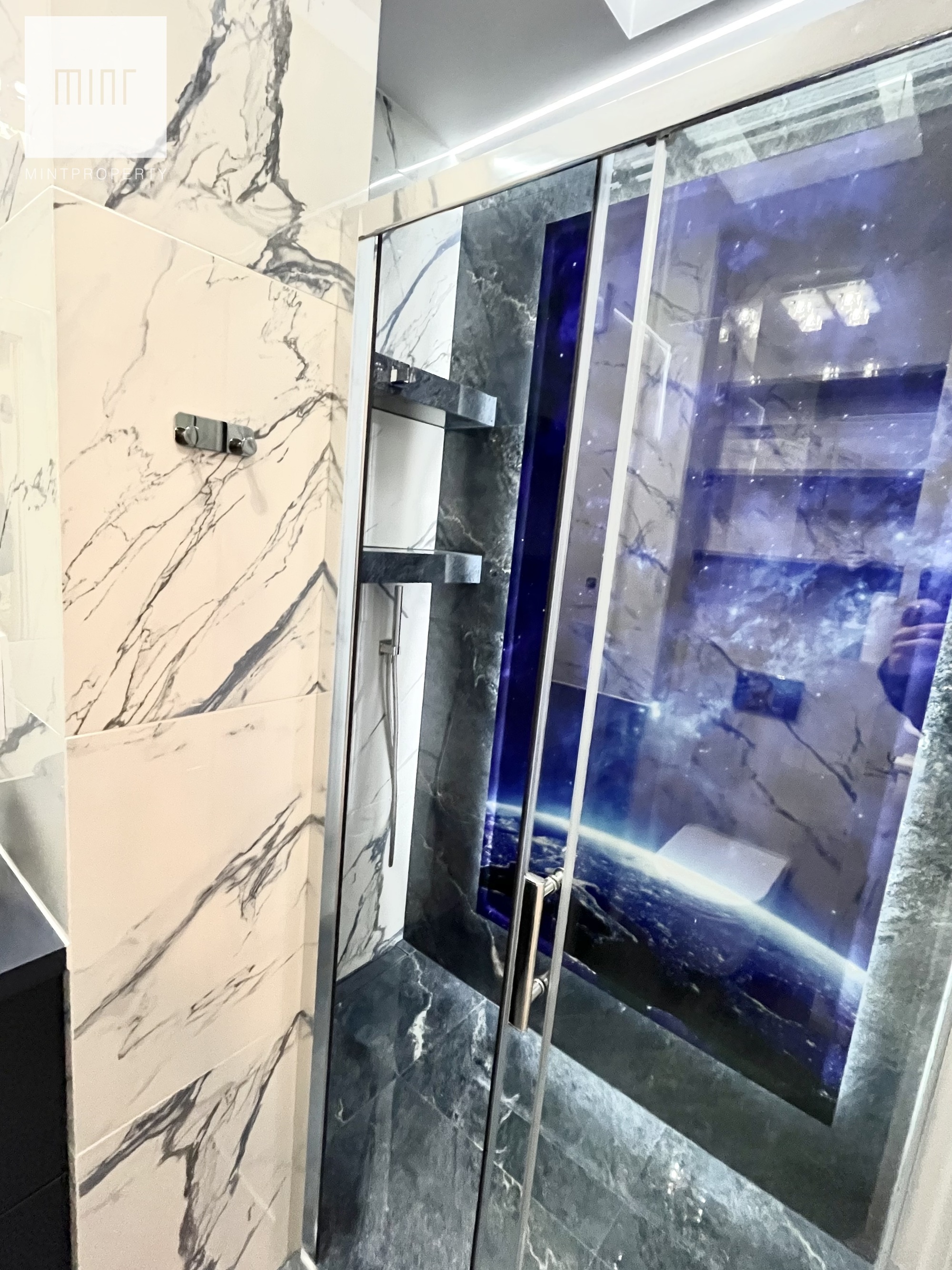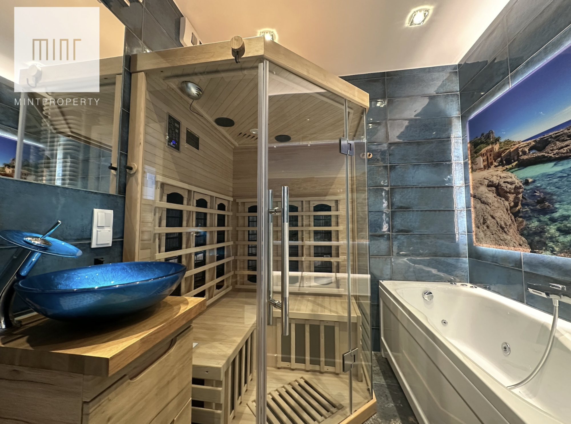 W łazienkach zaprojektowano wannę z hydromasażem (jacuzzi) oraz dwuosobową saunę na podczerwień, dzięki czemu można cieszyć się prywatną strefą relaksu w domowym zaciszu.