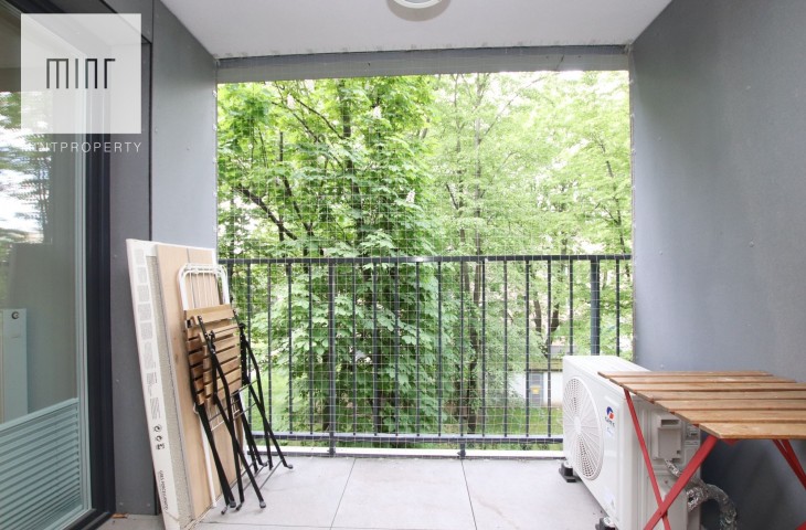 Dodatkowo, do nieruchomości przynależy balkon o powierzchni 3.8 m2. Rozkład mieszkania prezentuje rzut załączony do oferty. Dużym atutem mieszkania jest jego zachodnia ekspozycja. Wszystkie okna wychodzą na bardzo cichą oraz zieloną stronę - najlepsza ekspozycja w całej inwestycji - dla ludzi ceniących spokój. Okna nie wychodzą na dziedziniec.