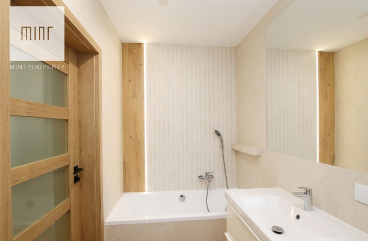 Mieszkanie w pełni wyposażone, nigdy nie zamieszkane. W kuchni znajdziemy zmywarkę, piekarnik, płytę indukcyjną czy lodówkę. W sypialni natomiast duże łóżko oraz szafe. Mieszkanie posiada klimatyzacje.