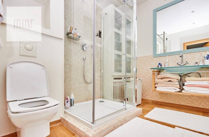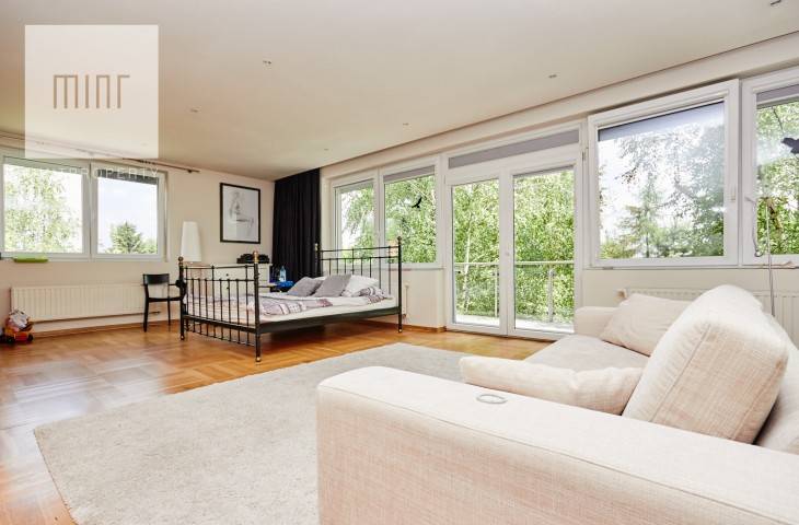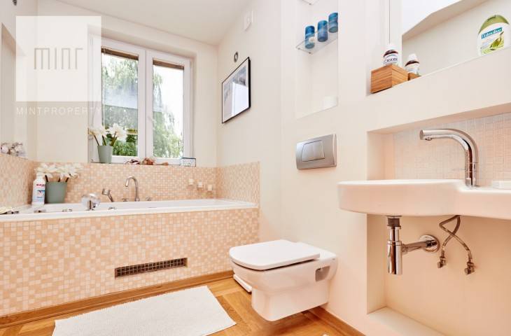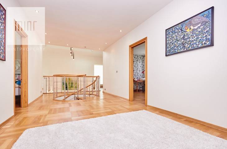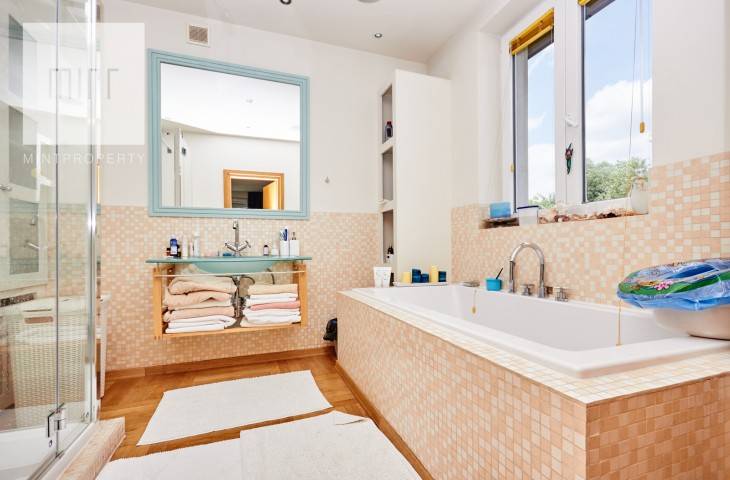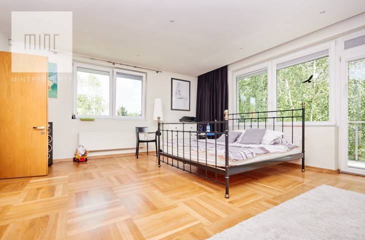 Piętro 1- sypialnia główna z oddzielną łazienką (wanna i prysznic) oraz garderoba, dwie oddzielne sypialnia, łazienka z wanną (hydromasaż). W tym główna sypialnia z balkonem.