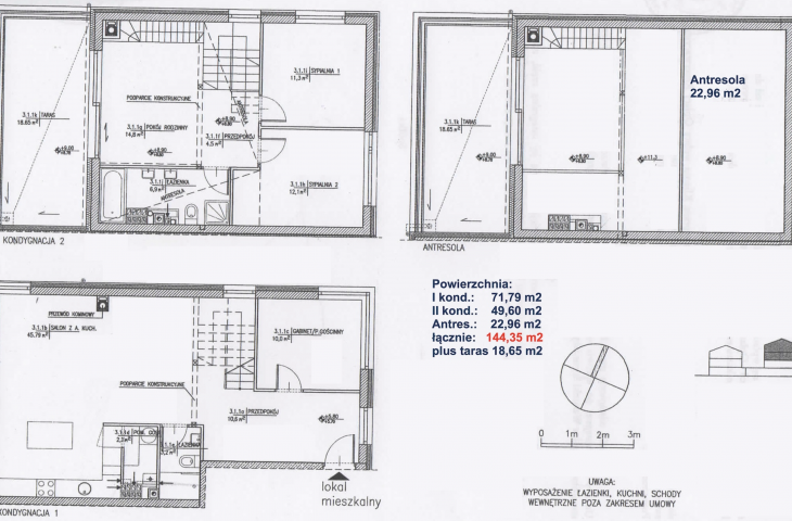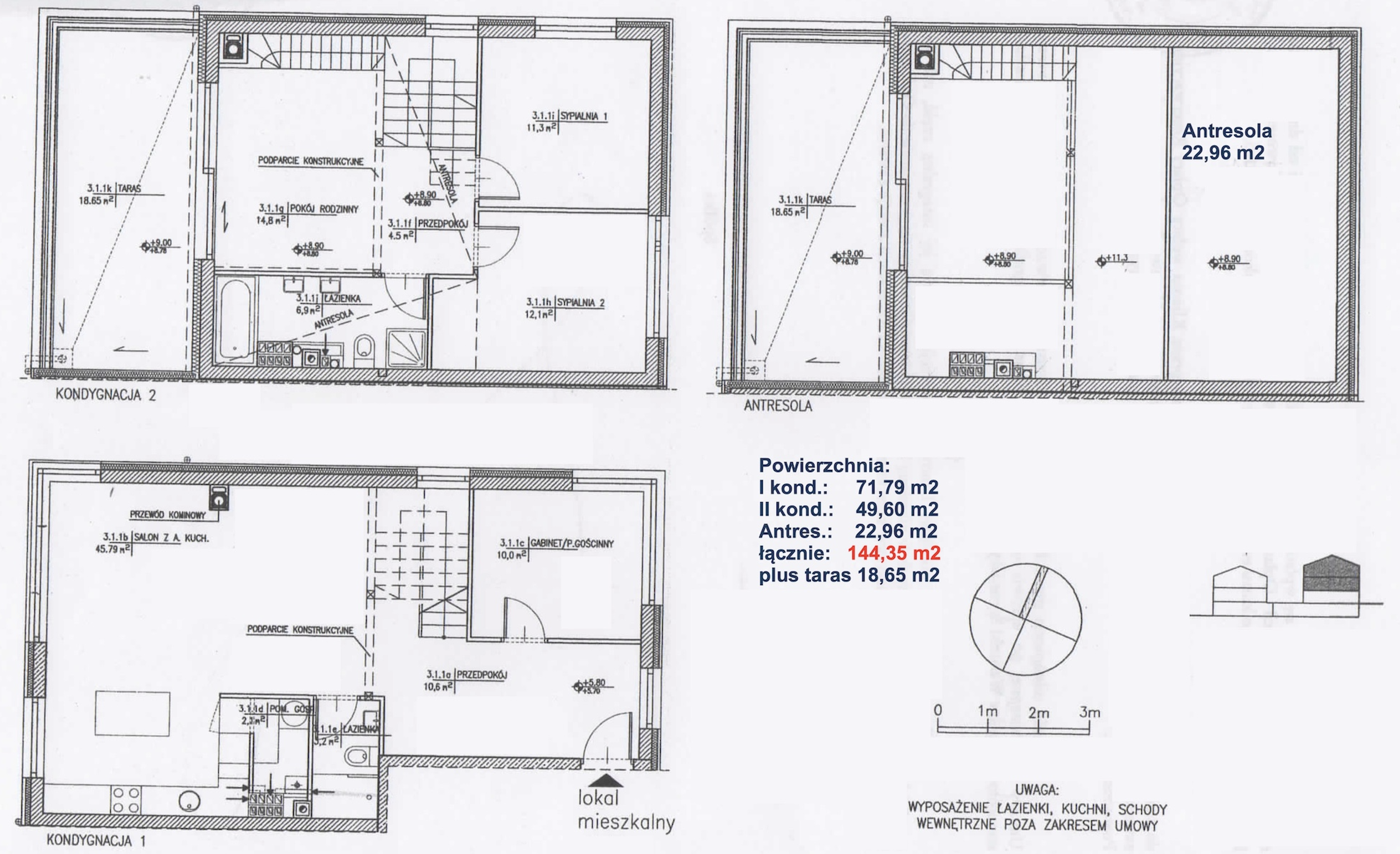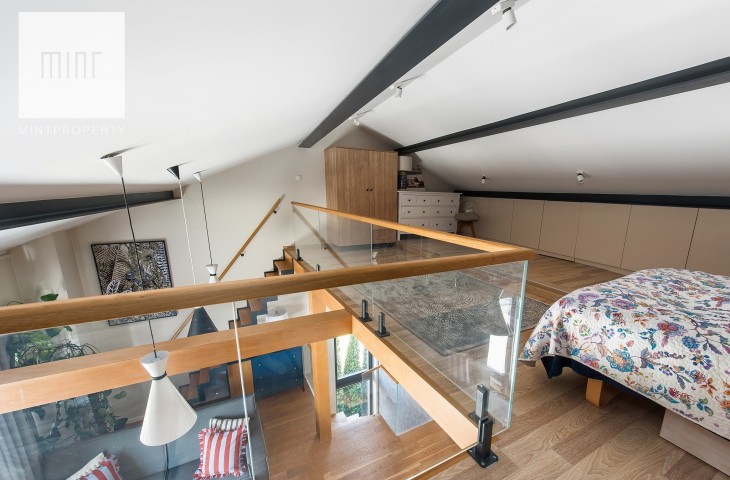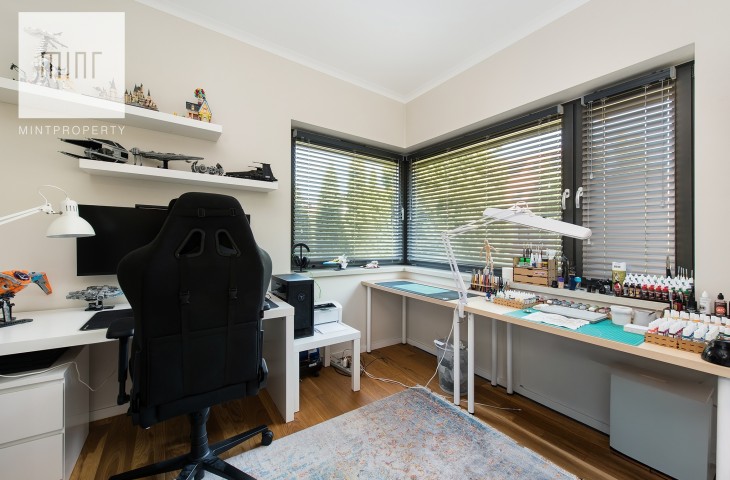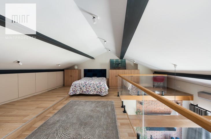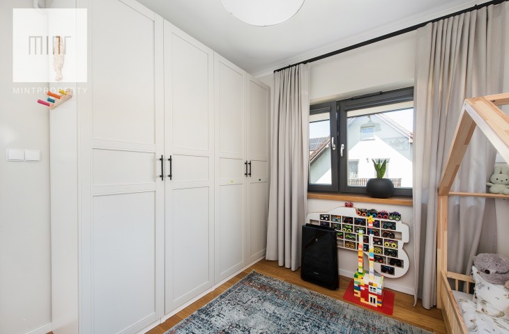 Obecnie w mieszkaniu wydzielone są 3 sypianie. Bez problemu, niewielnkim kosztem, możemy jednak wydzielić dodatkową, czwartą sypialnię na piętrze.