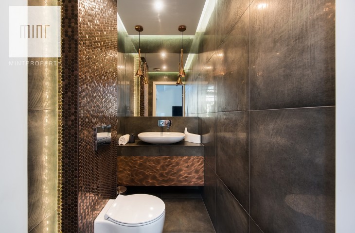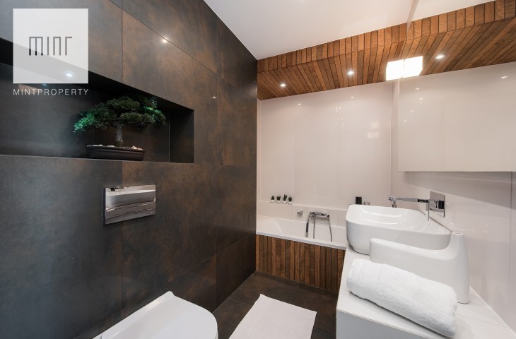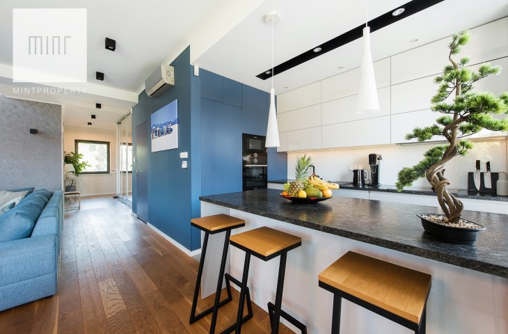 Całość wykonana jest z wysokiej jakości materiałów, drewniane podłogi, granitowe blaty, meble wykonane na wymiar. W apartamencie zainstalowano klimatyzację. Będąc wewnątrz mieszkania czujemy się jak w domu :)