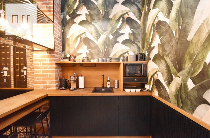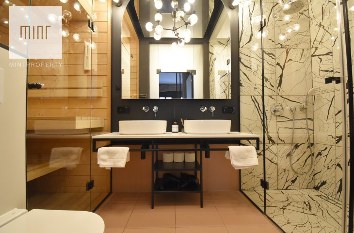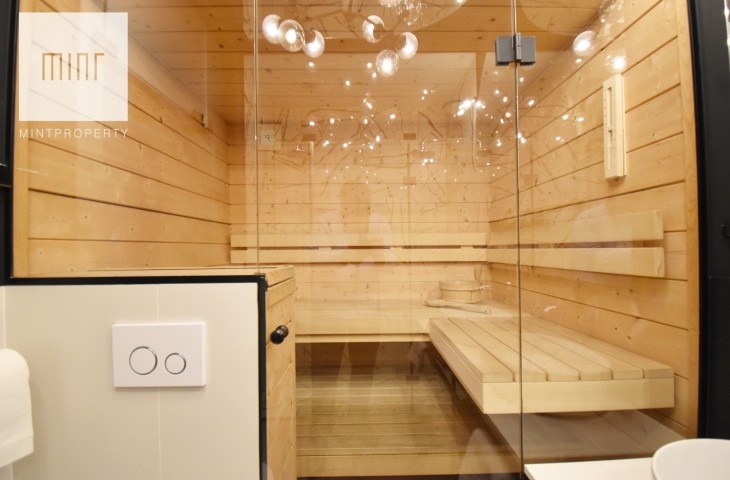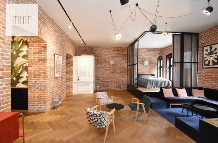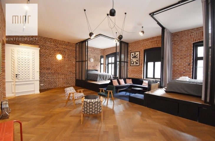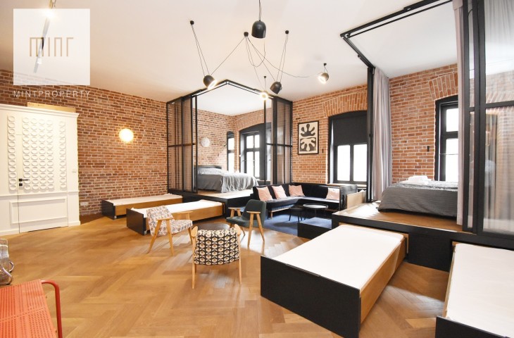 Obecnie jest to lokal inwestycyjny wynajmowany na krótkie terminy dla max 10 osób. Ma własną saunę. Bardzo oryginalne wykończenie.