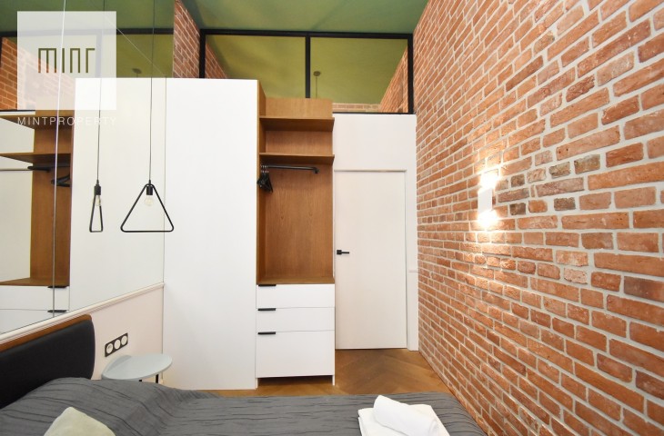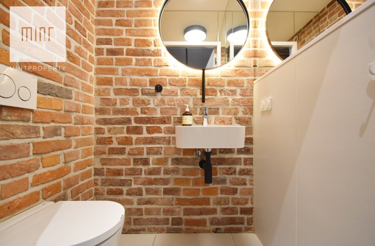 Mieszkanie przeszło generalny remont, który obejmował wymianę wszystkich instalacji, nowe tynki, odczyszczenie oryginalnej cegły, nowa stolarka okienna i drzwiowa, wymianę podłóg itd.