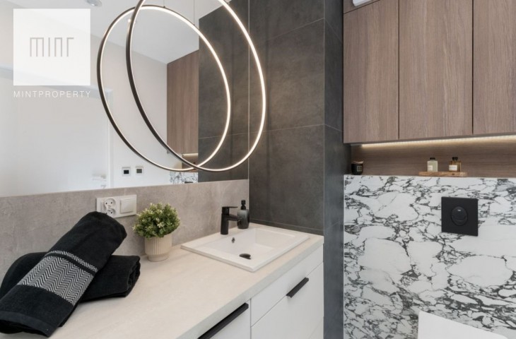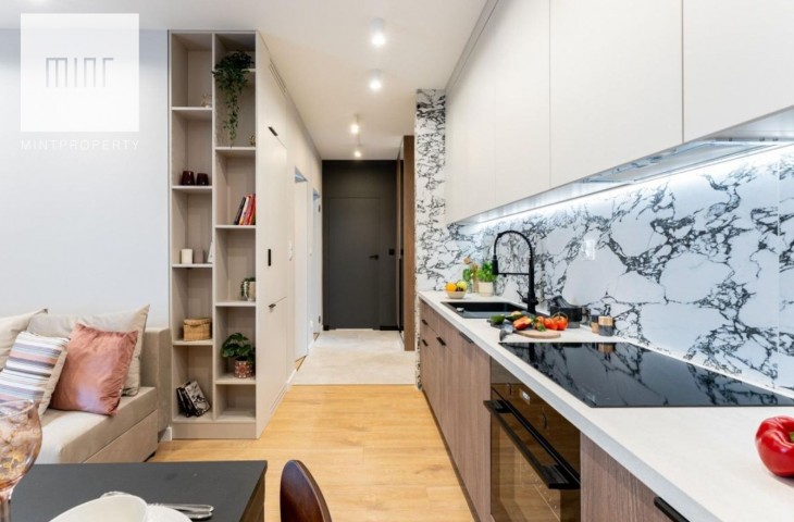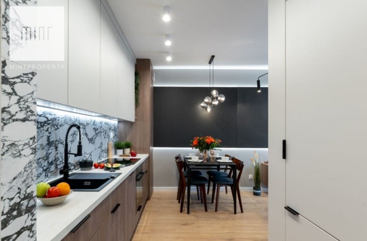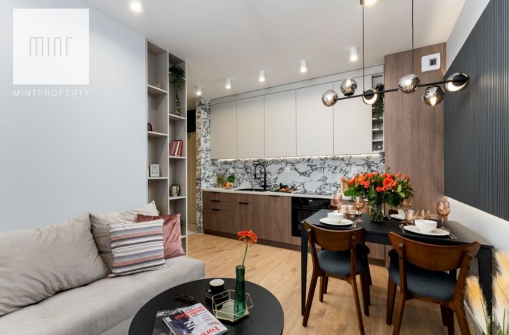 Mieszkanie ma 42.15 m² i położone jest na 5 - ostatnim piętrze z ekspozycją południową. Mieszkanie jest nowe, wykończone w wysokim standardzie, gotowe do wejścia.