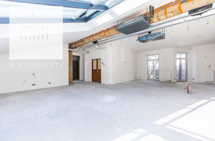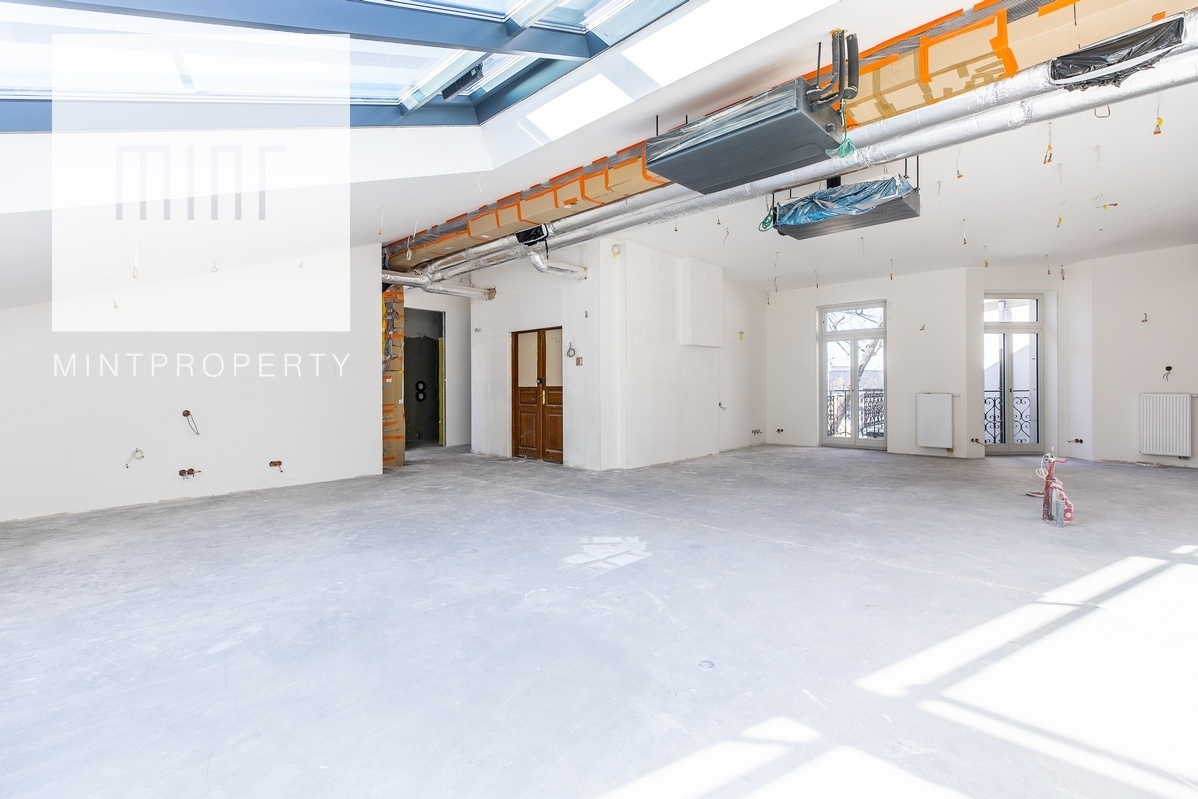 Apartament o powierzchni użytkowej 182 m2 znajduje się na czwartym piętrze pięknej neobarokowej krakowskiej kamienicy z 1898r., w jej nowej części, która została przebudowana w 2024 r.