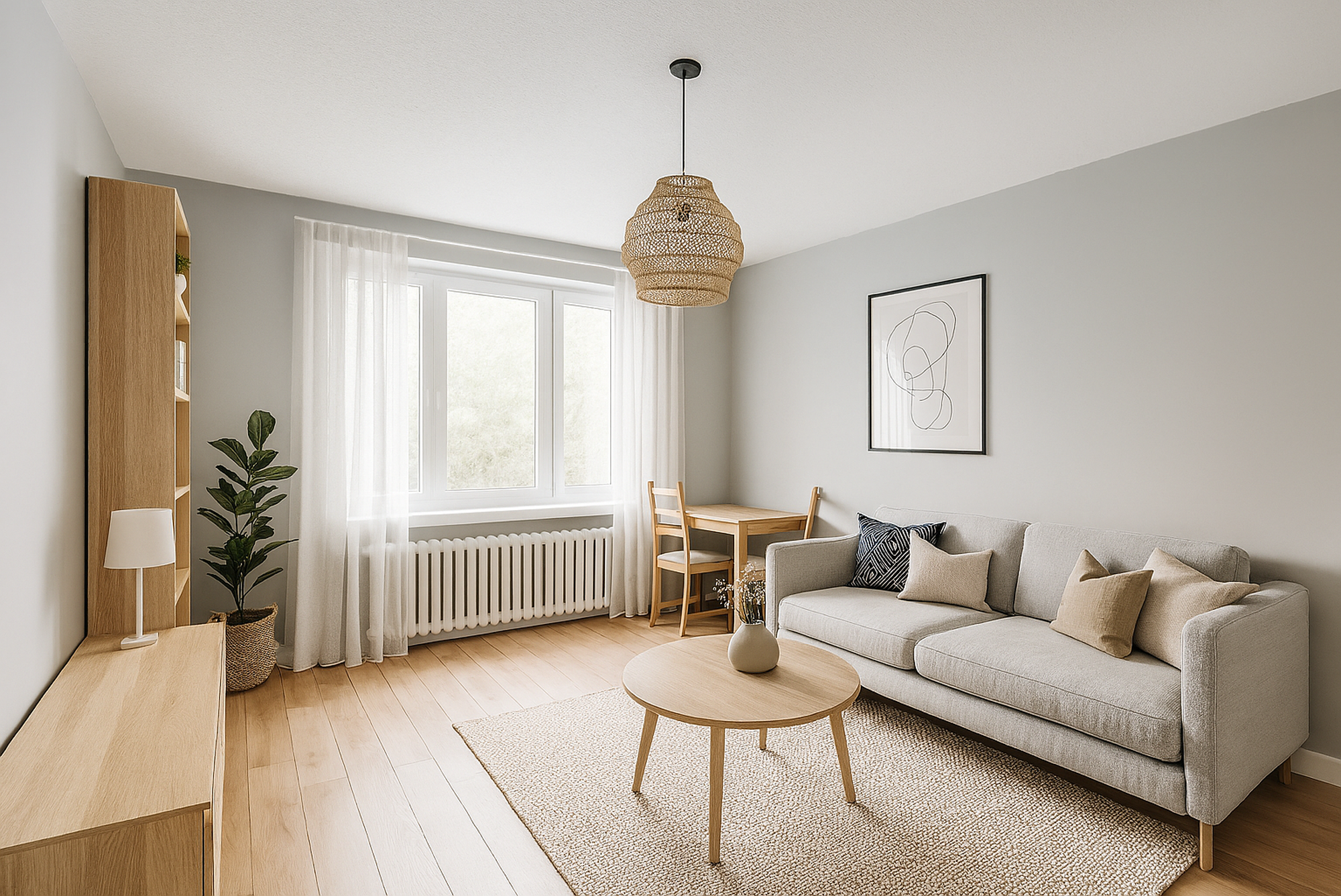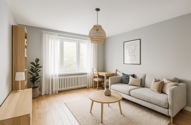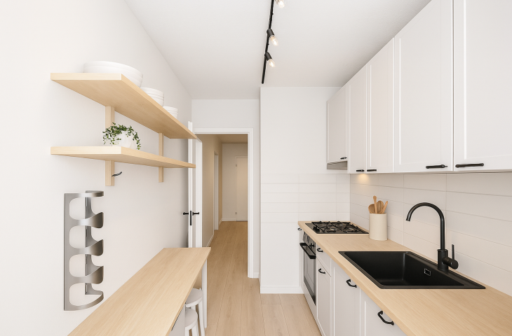 Mieszkanie narożne, z ekspozycją okien na południe i wschód, z pięknym widokiem na zieleń. W pokojach na podłogach znajdują się panele, natomiast w kuchni, łazience i przedpokoju – płytki. Ogrzewanie i ciepła woda z sieci miejskiej. Gaz doprowadzony jedynie do kuchenki gazowej w kuchni.